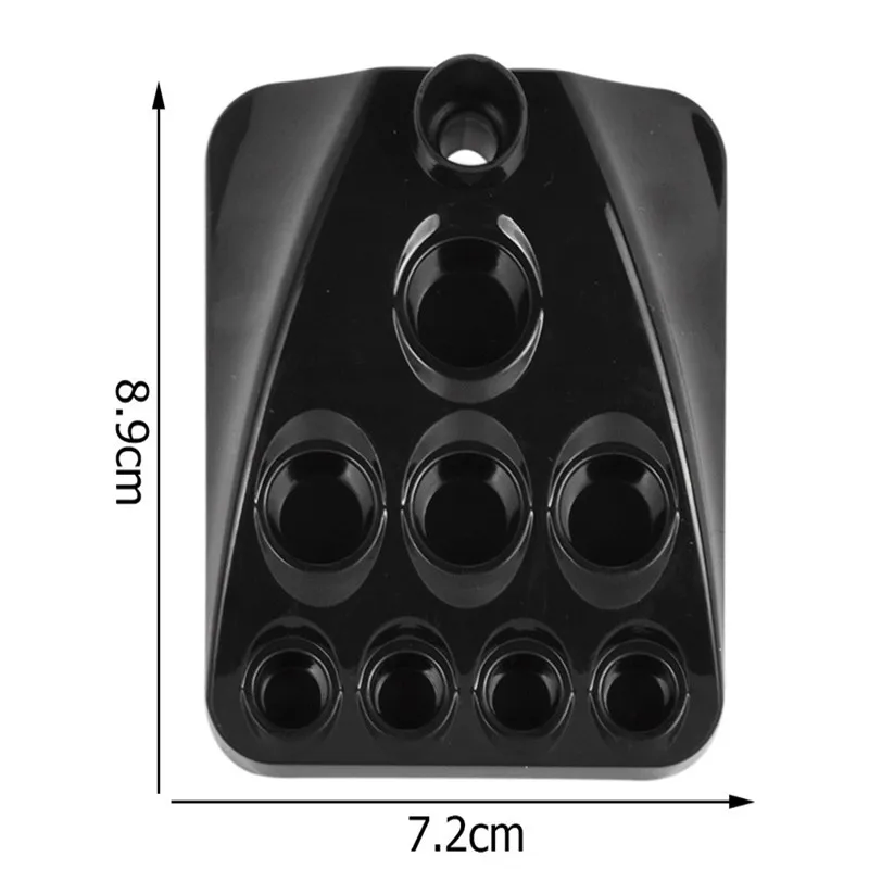 1. Пластиковый материал светильник вес.2. Можно положить на него чернильные стаканчики и тампоны при микроблейдинге.3. Удобно держать чернила для татуировок и предотвращать их выливание4. 2 в 1, можно не только поставить чашку, но и поставить тату-машинку.5. 9 отверстий, отверстие-держатель татуировочной машины, одно отверстие большого размера, три отверстия среднего размера, четыре отверстия большого размера.6. Имеется держатель для чернил трех размеров, подходящий для усиления тонера малого и среднего размера