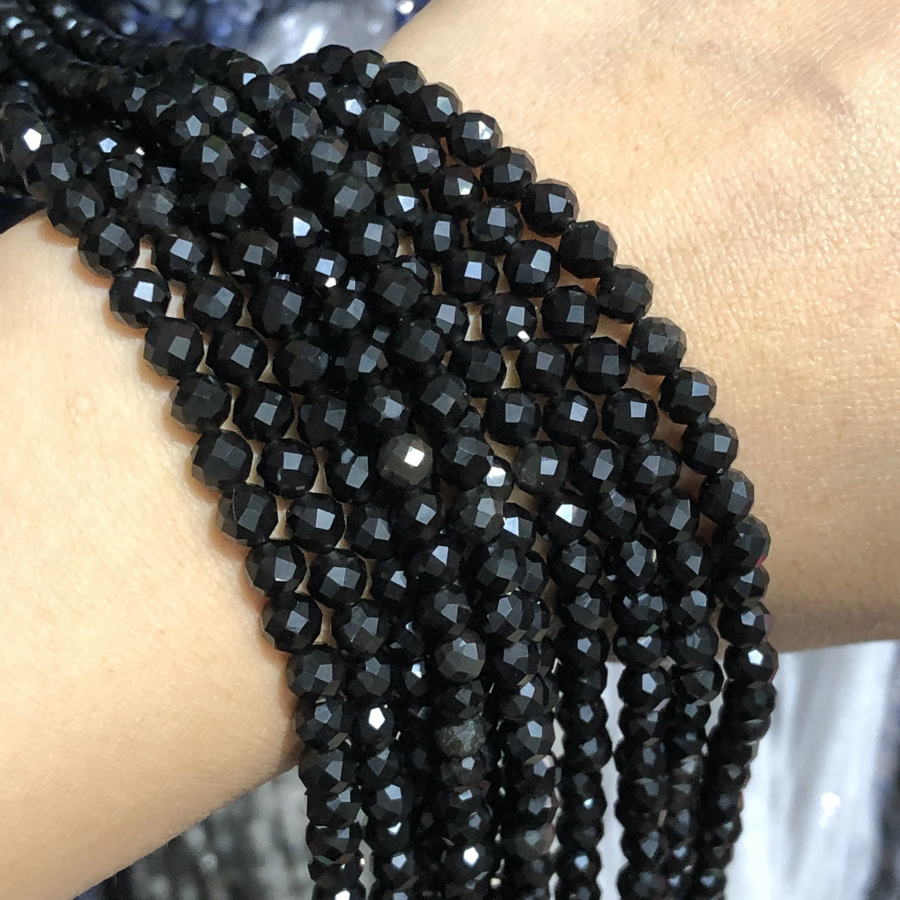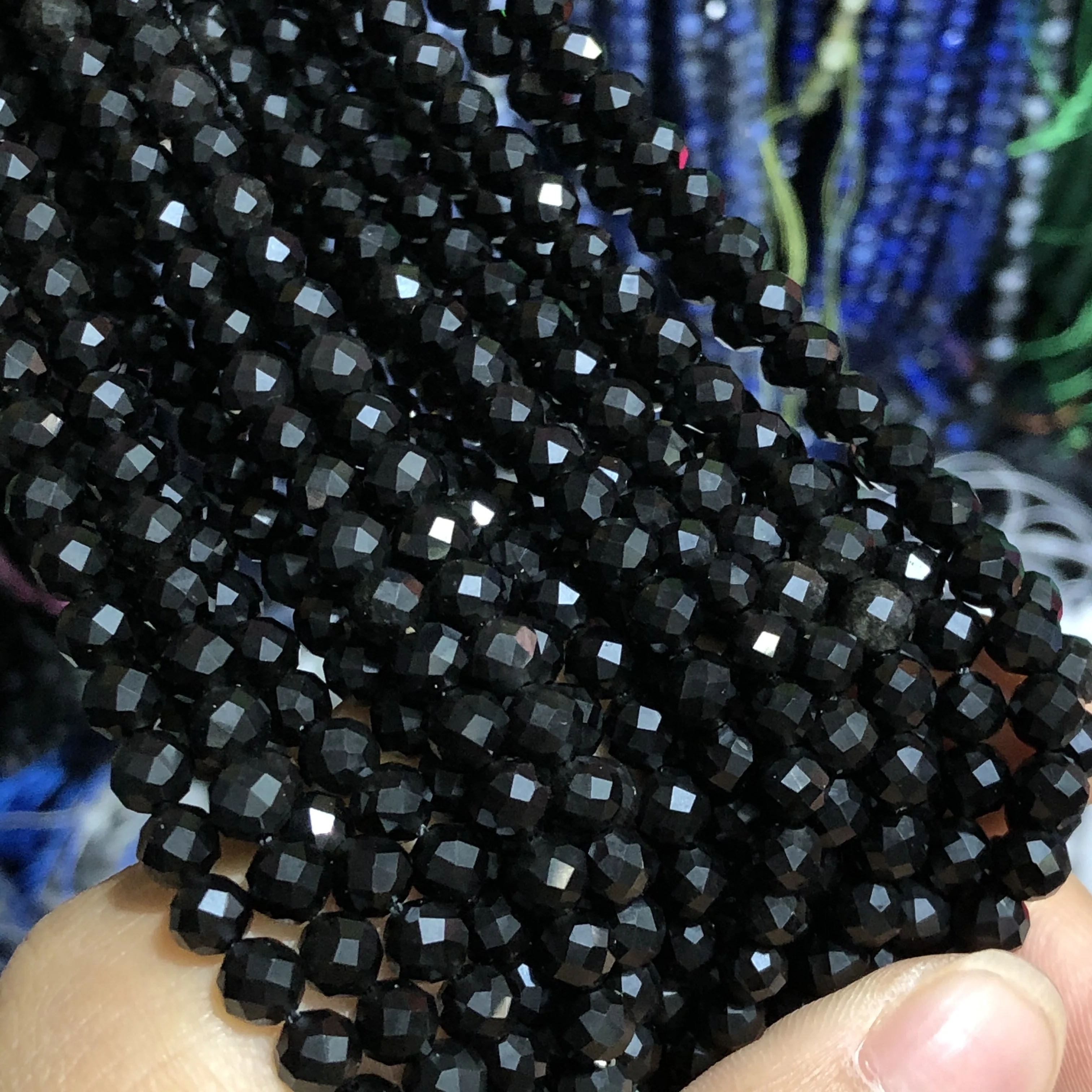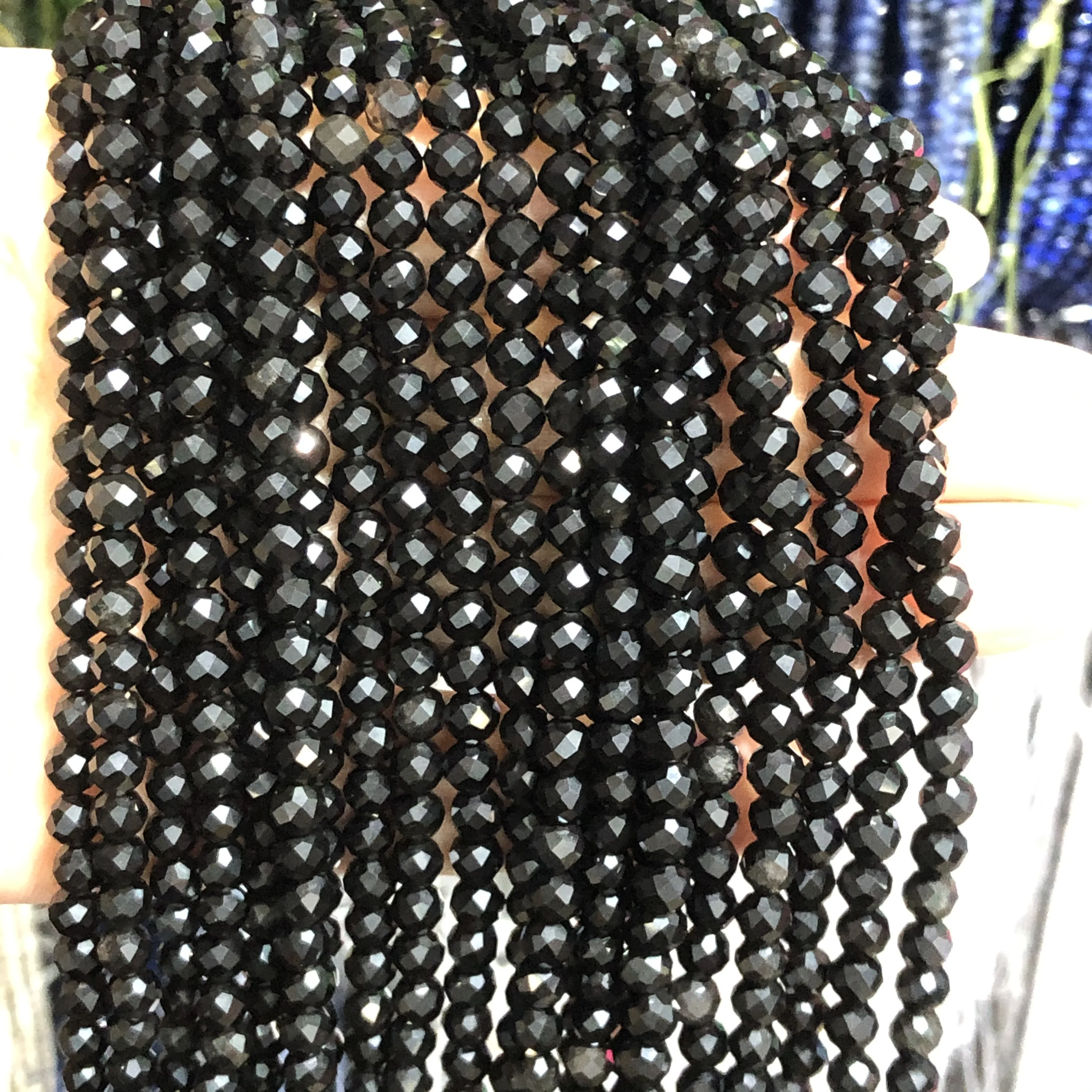 234 мм натуральный граненый черный обсидиан камень свободный разделитель Бисер Крошечный Бисер для изготовления ювелирных изделий Diy аксессуары для браслета и ожерелья