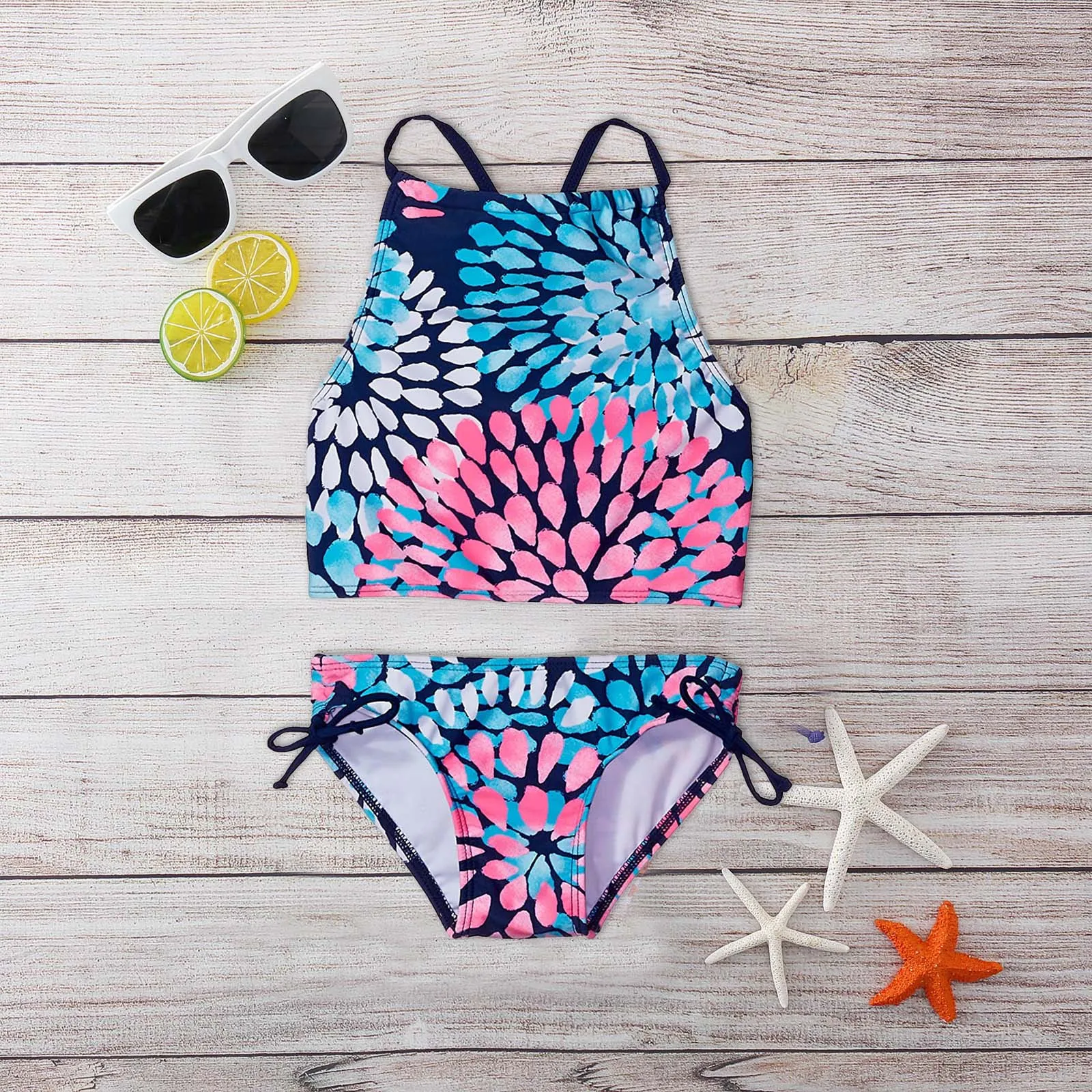Пляжный спортивный Танкини с маргаритками для девочек, купальник из 2 предметов, наряды, купальный костюм для детей, Высококачественная пляжная одежда для детей