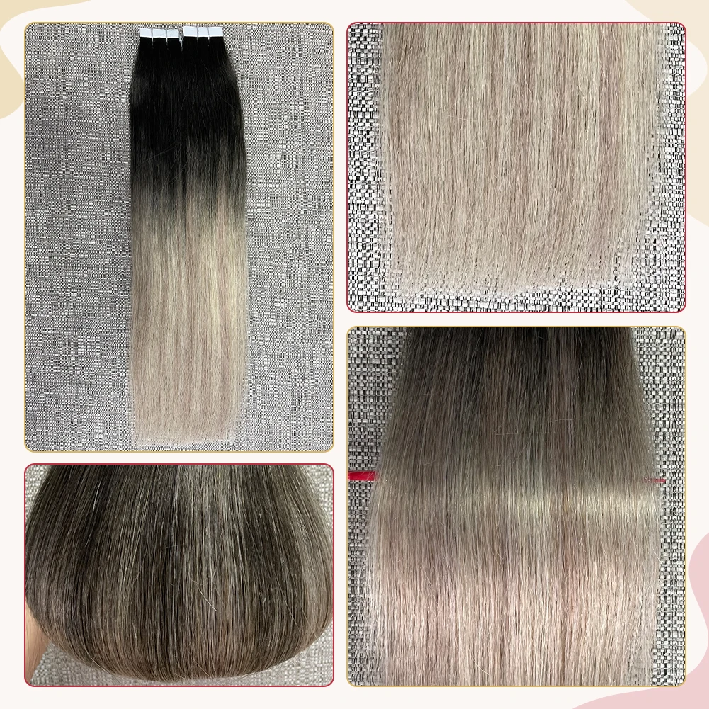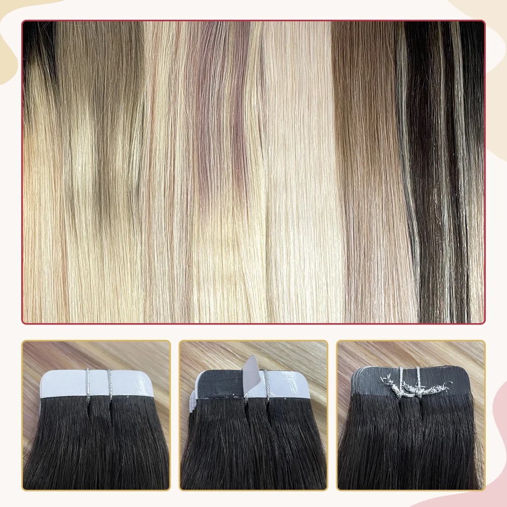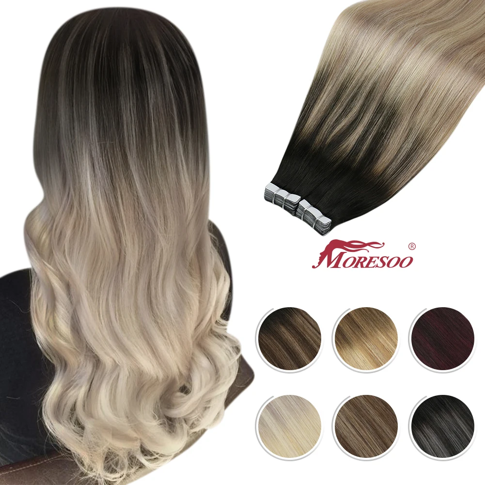 Moresoo лента из человеческих волос для наращивания невидимые накладные волосы балаяж 50 г машина Реми прямая лента в естественных прямых волосах