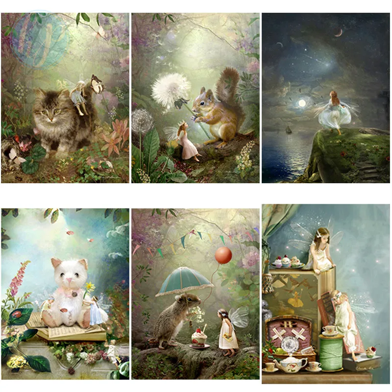 Полностью круглаяквадратная алмазная живопись с ангелом и животным, вышивка в скандинавском стиле, вышивка крестиком, Современное украшение для гостиной и спальни