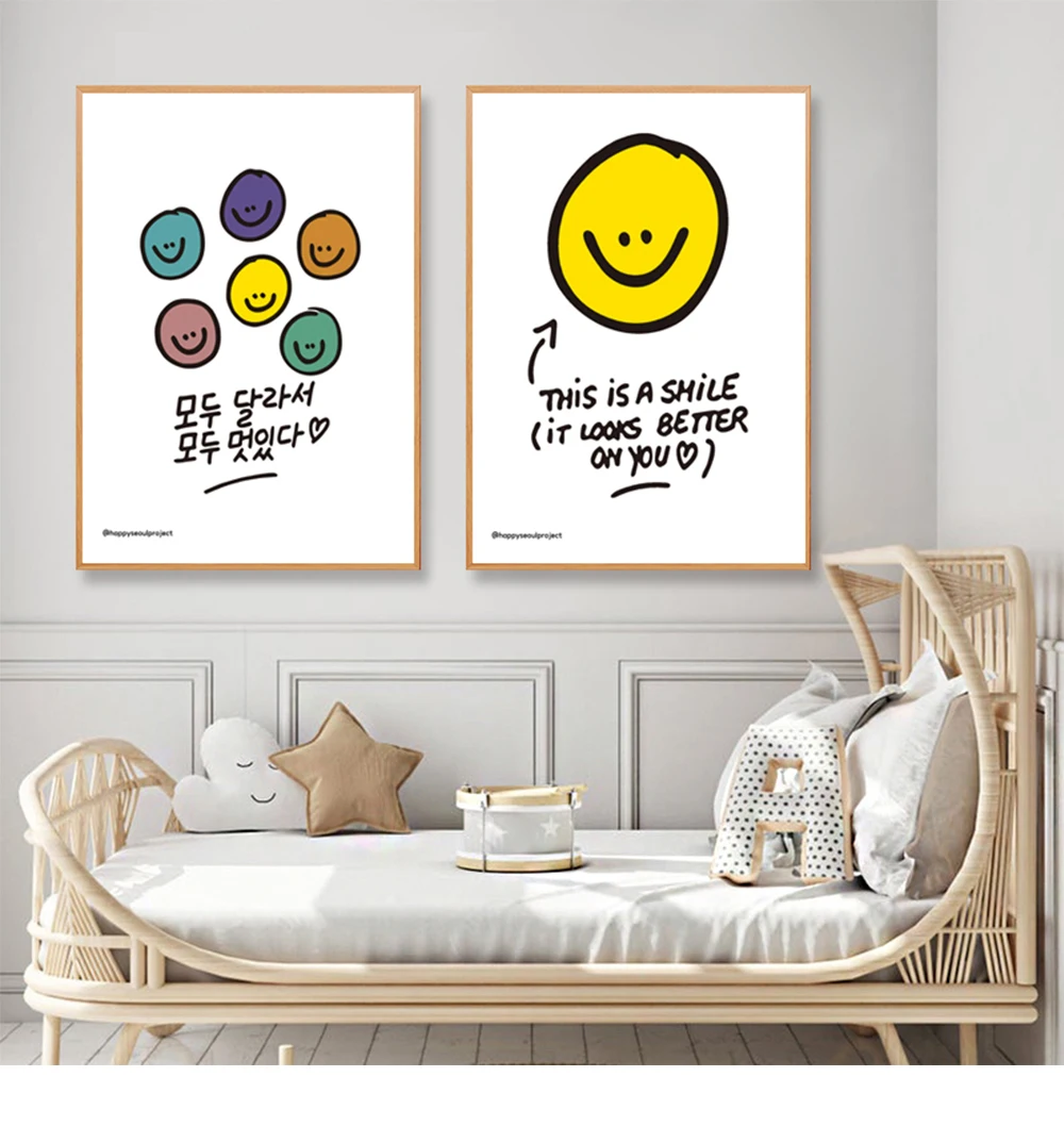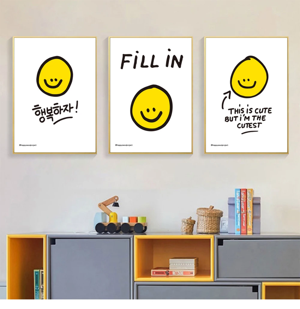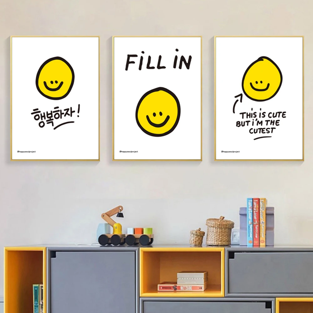 Желтая картина с улыбающимся лицом, современное минималистское укра...