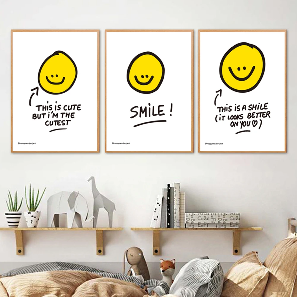Современная простая желтая Картина на холсте с изображением улыбки,...