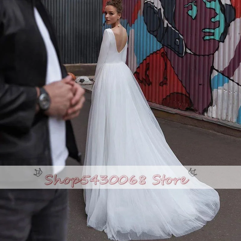 Трапециевидные пляжные свадебные платья KapokDressy в стиле бохо из тюля и атласа, винтажные платья для невесты с открытой спиной и длинным рукавом, новинка 2021