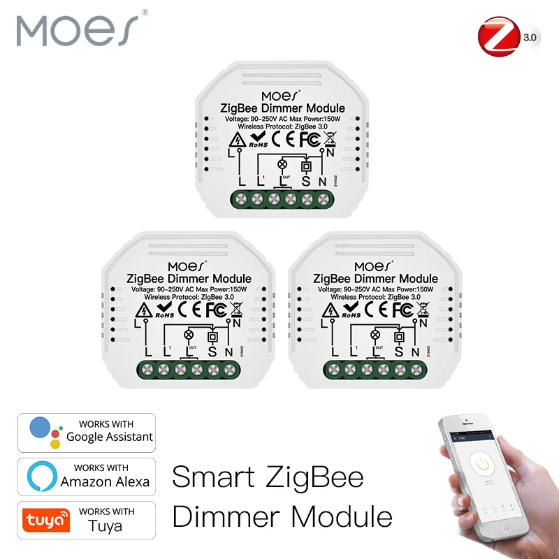 Moes Mini DIY Tuya ZigBee 3,0 умный диммер релейный модуль Tuya ZigBee3.0 хаб требуется умная жизнь/Tuya приложение беспроводной пульт дистанционного управления, работает с Alexa Google Home Голосовое управление 1/2 способ 1 банда Изготовитель: Moes Основные характеристики: