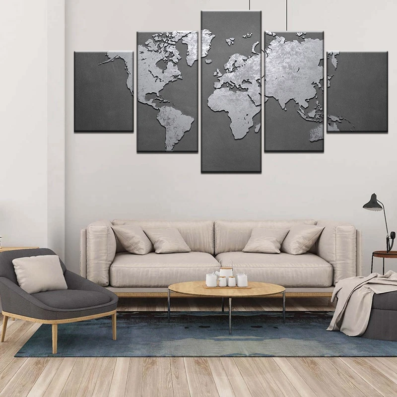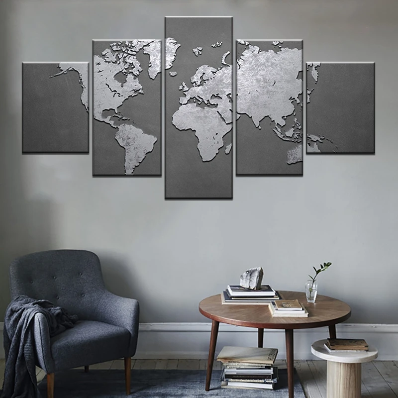 Постер художественные картины на холсте постер печать 5 панелей абстрактная Карта мира Картина домашний декор настенное искусство рамка awtwork