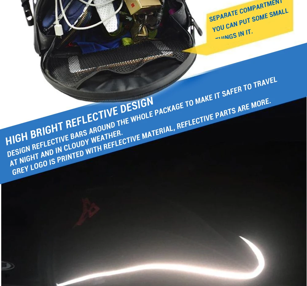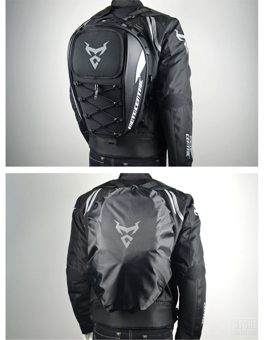 Особенности:Изготовлен из углеродного волокна и ткани Оксфорд, расширенный может поставить половину шлема, может использоваться как Топливный бак/рюкзак, безопаснее ездить ночью и в дождливые и туманные дни.