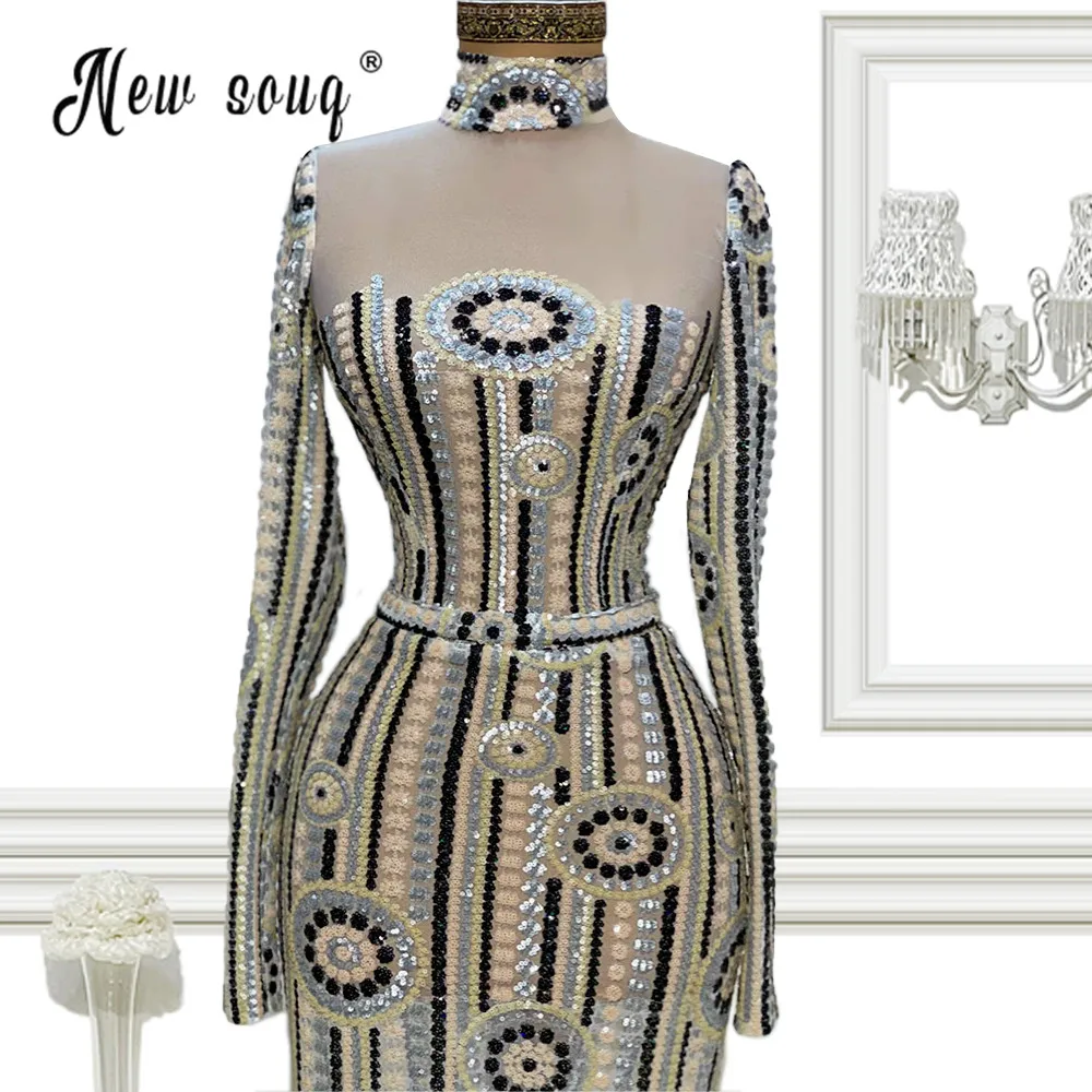 Женское коктейльное платье, украшенное бисером, с длинным рукавом, ...