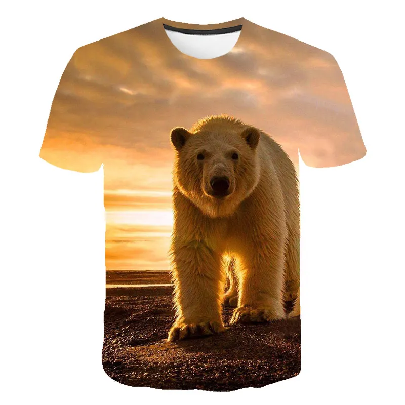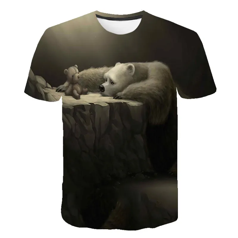Футболка оверсайз мужская с принтом медведя, Повседневная модная рубашка с 3D рисунком животных, с короткими рукавами, уличная одежда, лето
