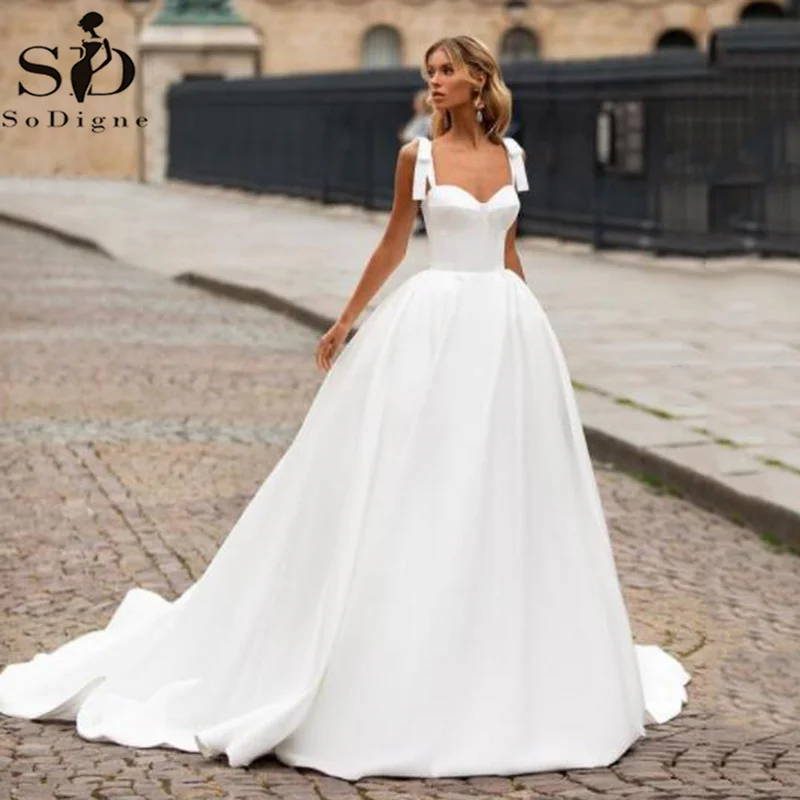 Атласное Бальное Платье soworthy, простое кружевное свадебное плать...