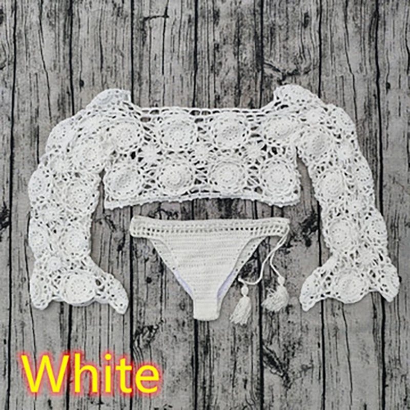 Женское ажурное бикини, вязаное платье с юбкой, шорты с высокой талией, соблазнительный купальник-труба, топ, комплект из двух предметов, Модный Купальник