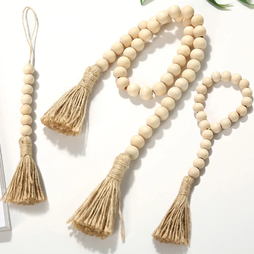 Гирлянда из натуральных джутовых бусин, 3 цвета, в богемном стиле