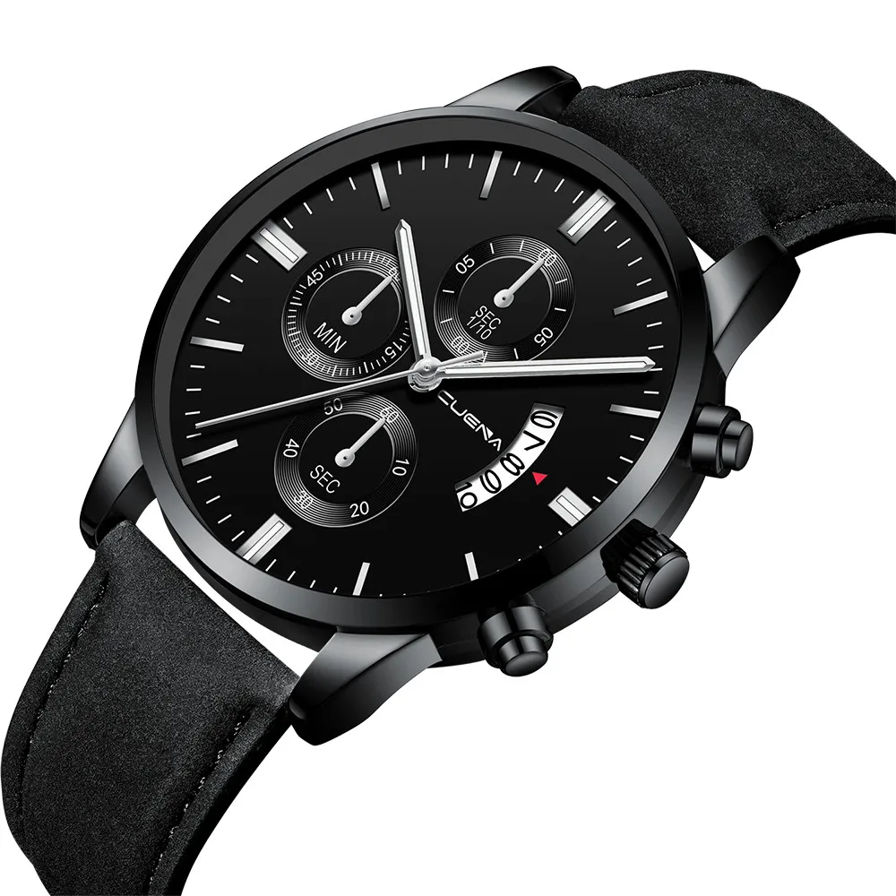 Мужские модные спортивные часы CUENA, кожаный ремешок, Кварцевые ан...