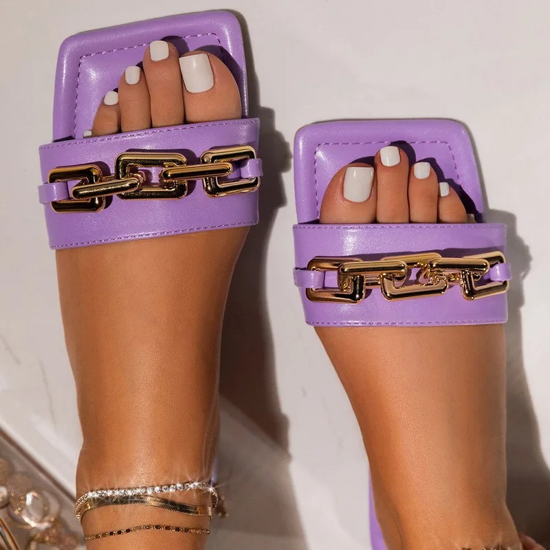 Женские тапочки 2021 летние юбки с цветочным принтом Цепи класса люкс с квадратным носком; Женская обувь на Плоском Каблуке размера плюс открытый удобные пляжные сандалии