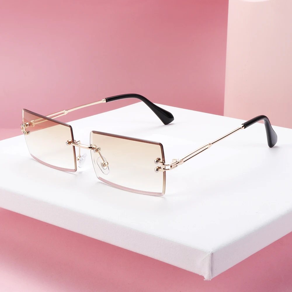 2021 Модные солнцезащитные очки без оправы для женщин, трендовые маленькие прямоугольные солнцезащитные очки, очки для путешествий, стиль UV400, летние очки, аксессуары