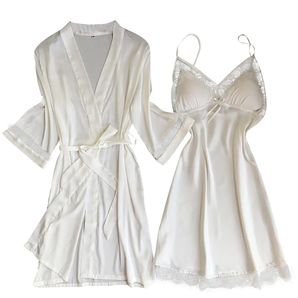 Упаковка: 1 комплект кружевной шелковой пижамы