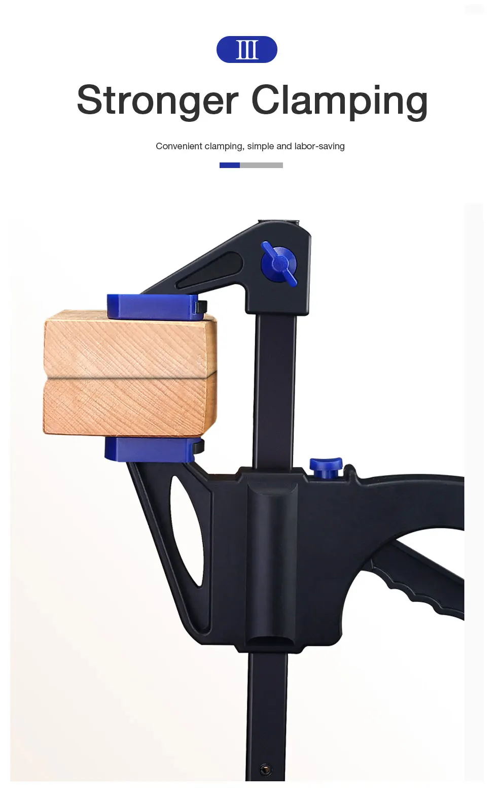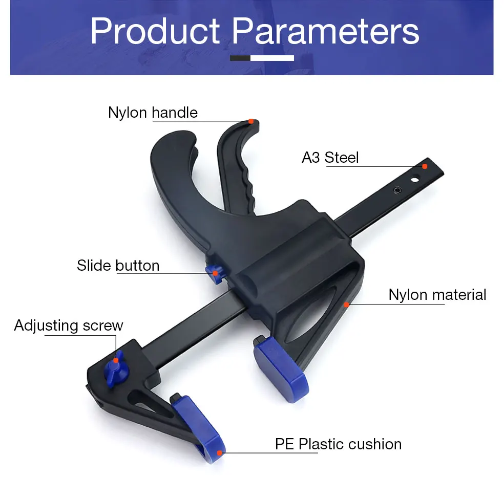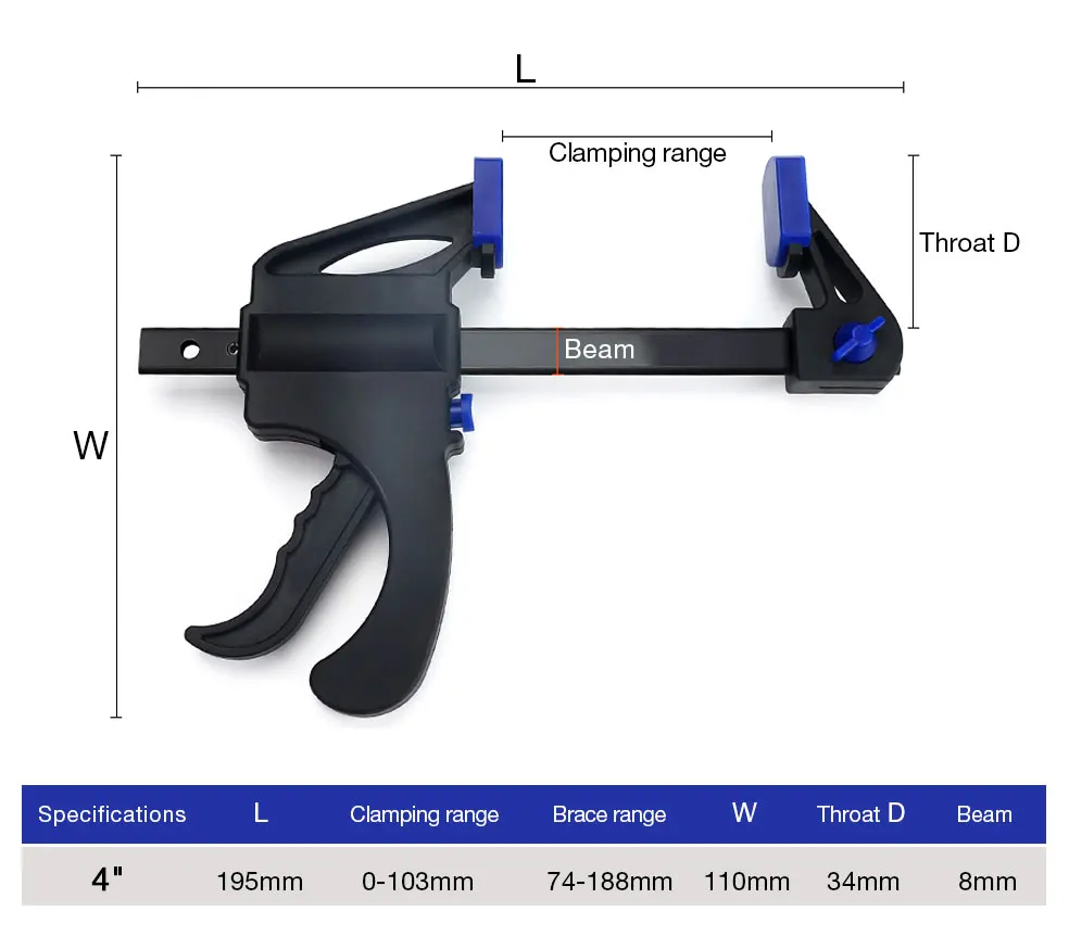 Особенности:Усиленный нейлоновый материал: прочный для использования.Идеально подходит для упаковки, столярных работ и мебельных проектов.Хороший инструмент для быстрой деревообработки, ручной работы, рукоделия ручной работы...Прост в обращении и удобен в использовании.Мягкие губки: плотно прилегают, не повреждая и не царапая поверхности. Советы по использованию:Нажмите кнопку быстрого спуска, чтобы освободить челюсть, а затем сдавите спусковой механизм, чтобы нажать кнопку «ure».После установки, челюсть заблокирована и не будет смещаться.Когда работа закончена, просто нажмите кнопку быстрого спуска, чтобы отпустить заготовку. Характеристики:Продукт: F зажим для обработки дереваМатериал: пластикЦвет: из-за различных партий, цвет и размер продукта будут отличаться. Наши продукты будут отправлены случайным образом. Максимальная длина зажима: как на картинке