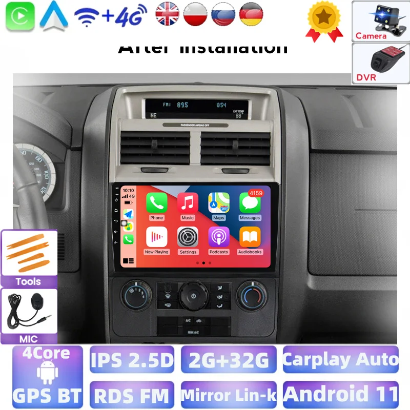Автомобильное радио, 9 дюймов, Android 11, для Ford Escape 2007-2012, GPS, видео, мультимедиа, стерео, Автомобильный плеер, экран Carplay IPS, No 2din, DVD