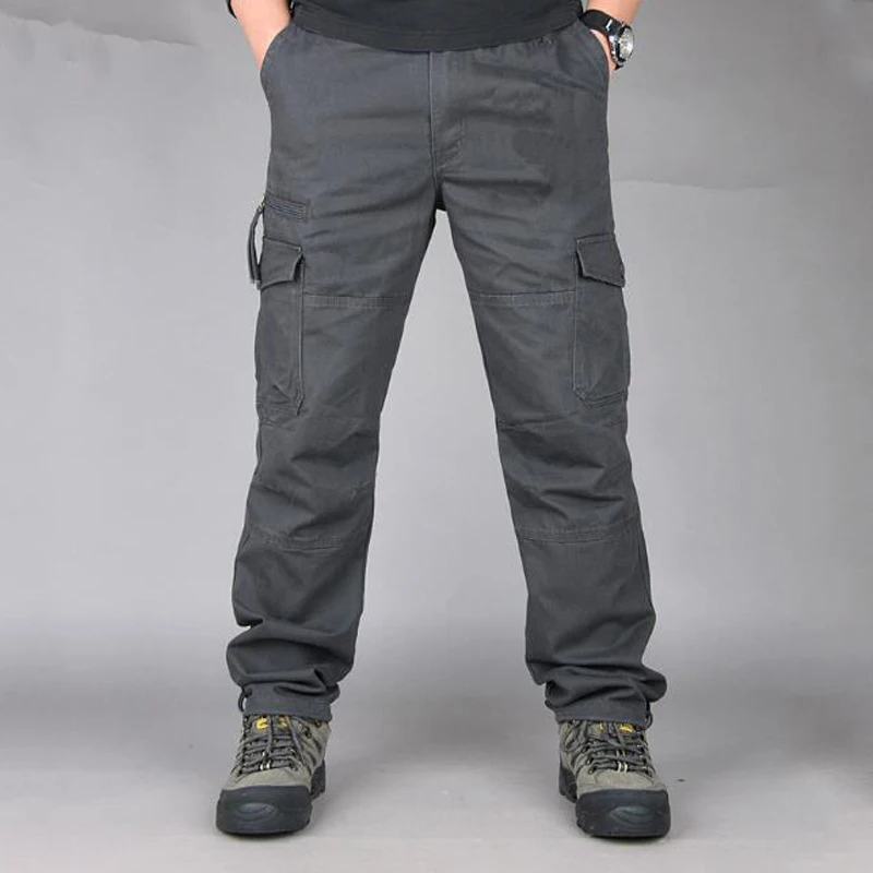 Брюки-карго мужские, тактические прямые штаны на молнии с карманами