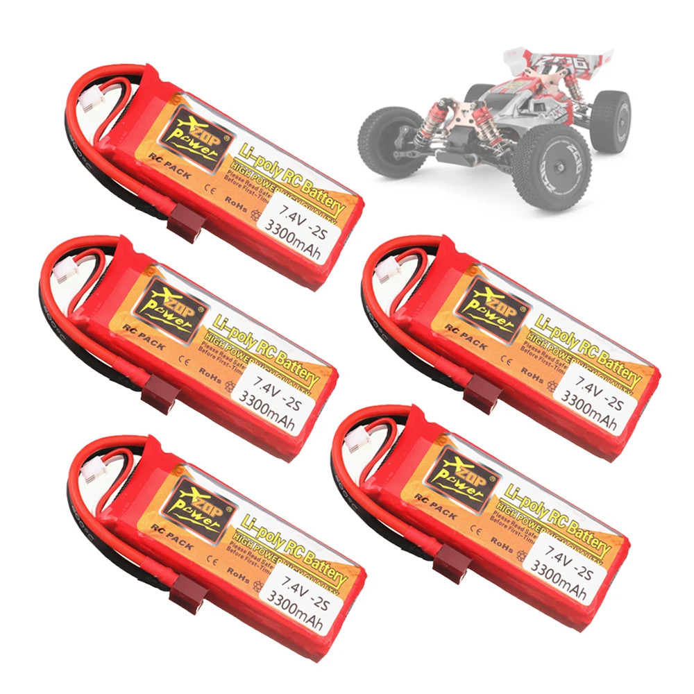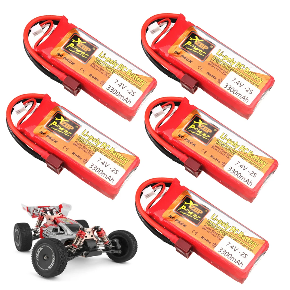 Аккумулятор Lipo 7,4 В для гоночного автомобиля WLtoys 144001 2,4G, запасные части для 2S 7,4 в 3300 мА ч, аккумулятор Lipo для Wltoys 12428, 1-5 шт.