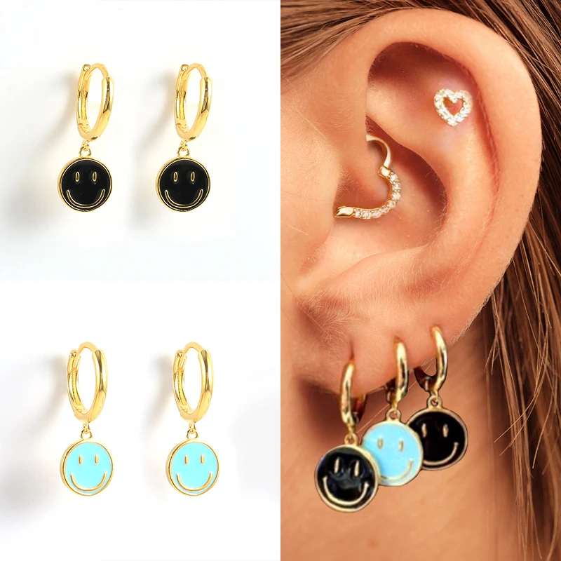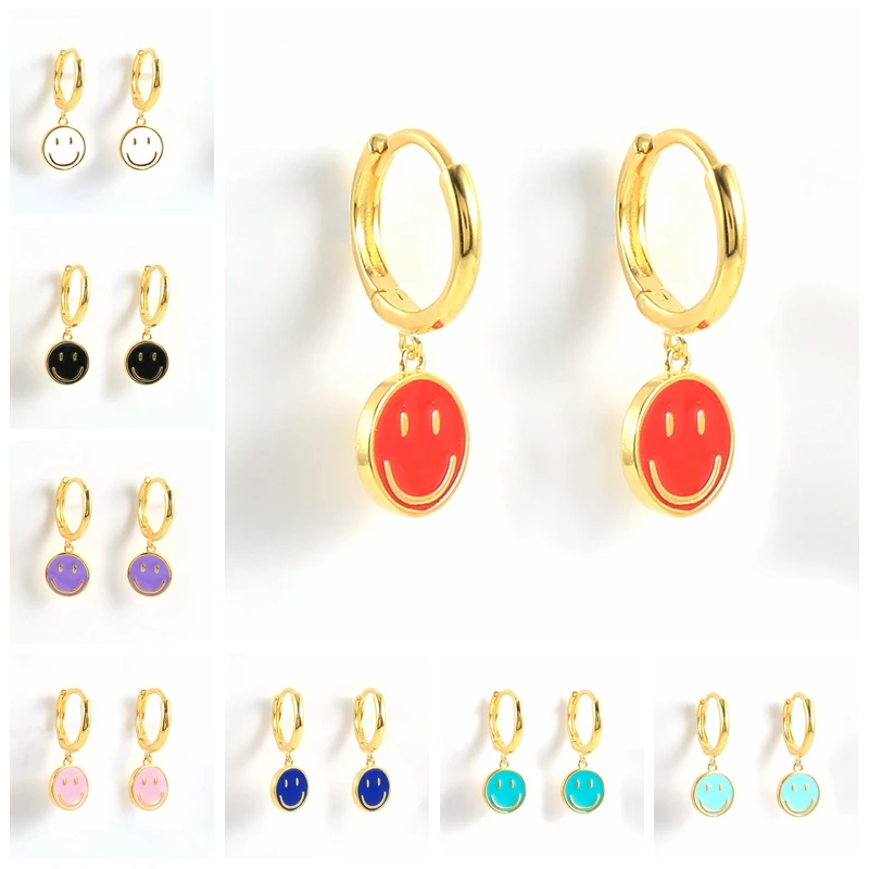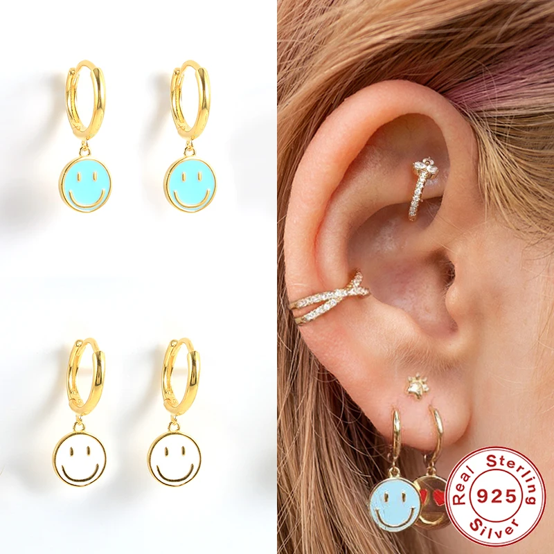 Женские винтажные серьги с большим смайликом Aide 2021, серебро 925 пробы, висячие серьги, пирсинг, подарки для мам