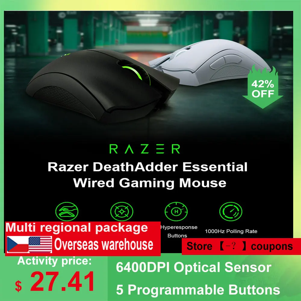 Игровая мышь Razer DeathAdder Essential, 6400 точекдюйм, оптический сенсор, 5 кнопок, программируемые, эргономичный дизайн