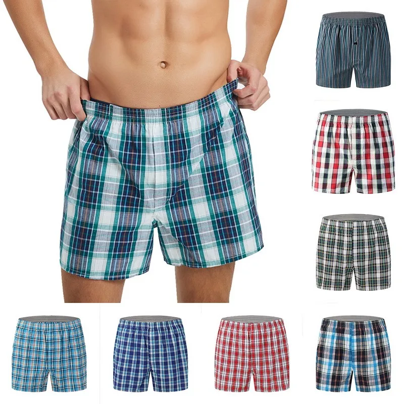 Трусы-боксеры мужские в клетку, классическое пикантное нижнее белье...
