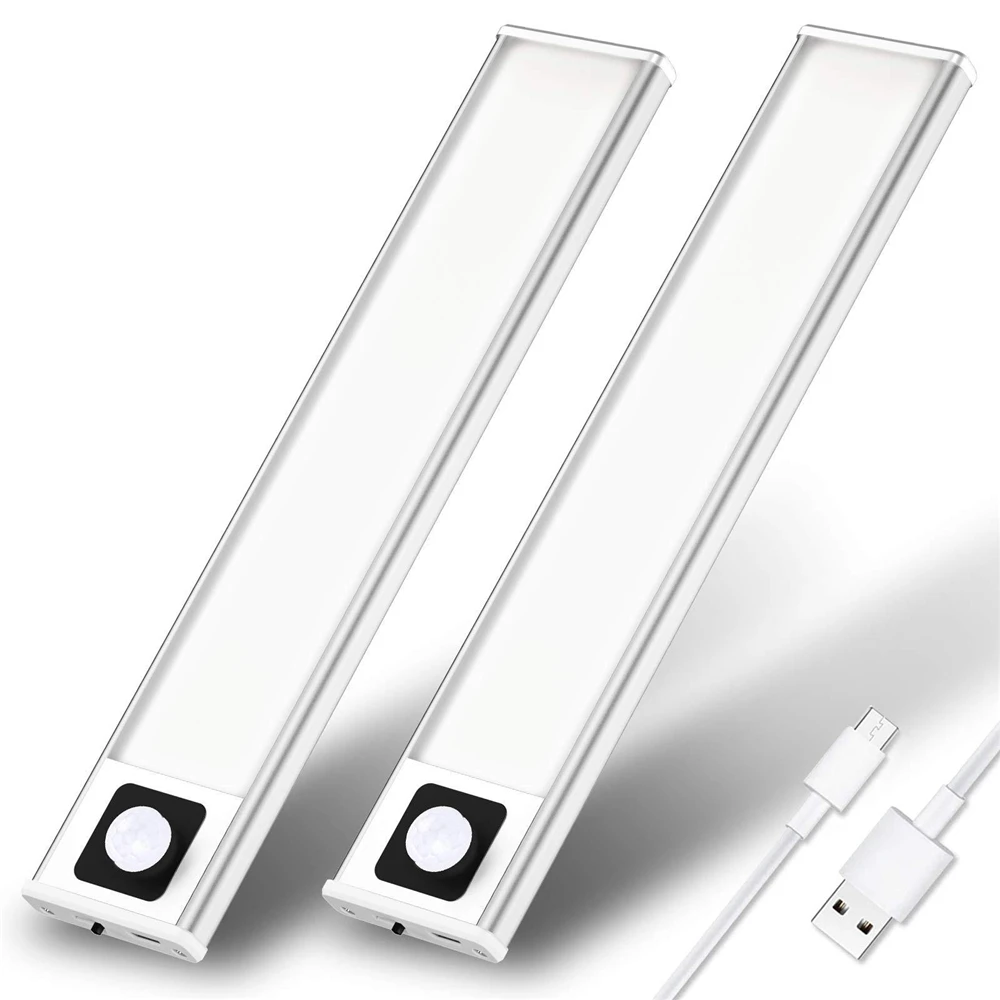 Ультра-тонкий 60 см движения Сенсор Беспроводной светодиодный ночной Светильник s Шкаф светодиодный светильник USB Перезаряжаемые Лестницы гардеробная комната проход светильник Инж