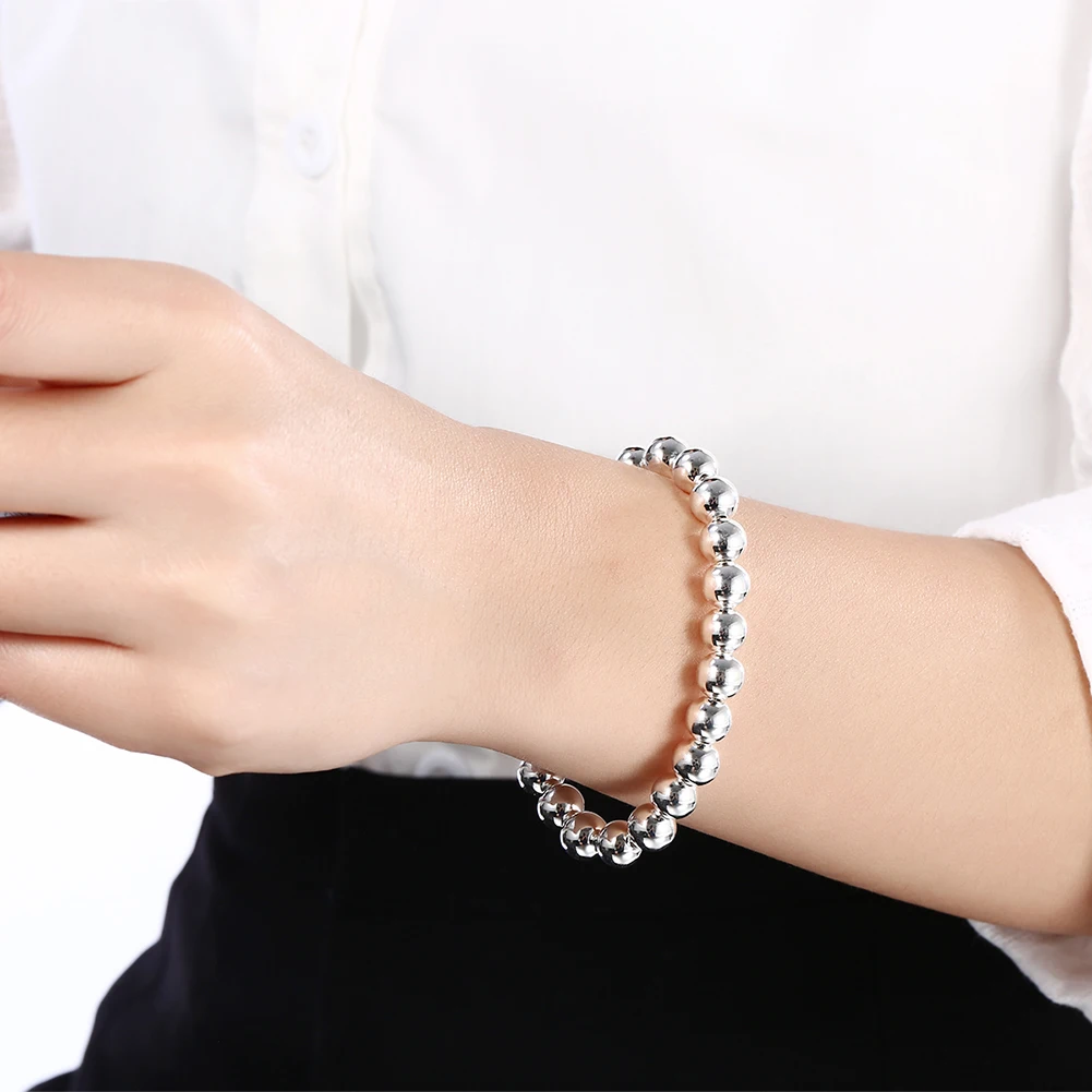 Лидер продаж, Классическая цепочка из бусин 10 мм, серебряные брасл...