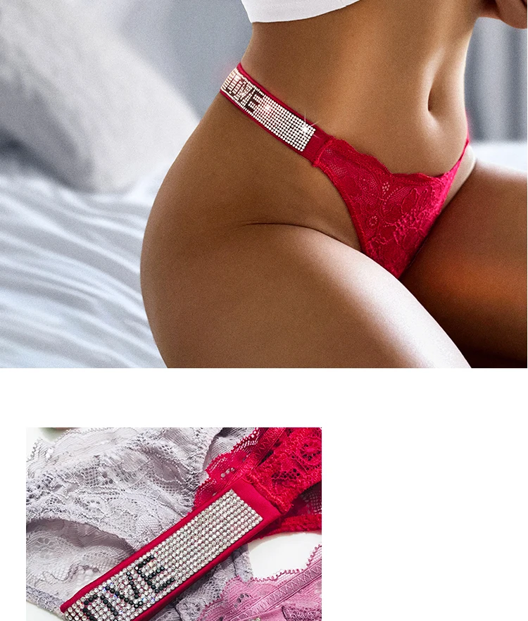 Сексуальные женские стринги с надписью стстразы, бриллиантовые стри...
