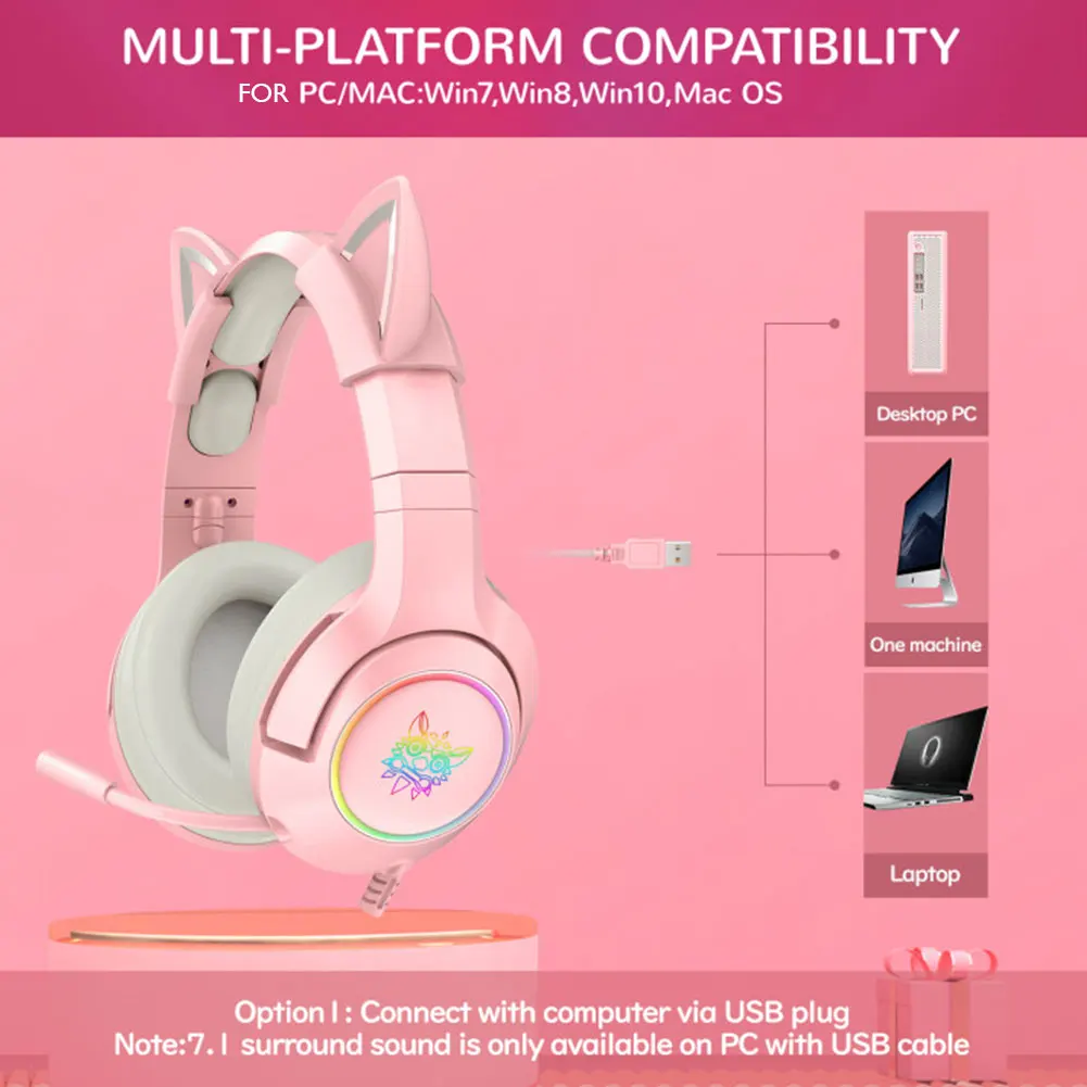K9 милые кошачьи наушники для девочек геймер для ноутбука RGB светодиодные наушники с микрофономСпецификация:Тип: K9Диаметр гудка: 50 мм/1,96 дюймаИмпеданс: 32 15 (Ом)Чувствительность: 116 дБ/мВт ± 3 дБЧастота: 20-20000 ГцРабочий ток светодиодный да: мАРабочее напряжение светодиодный да: 5 В ± 5% постоянного токаИнтерфейс наушников: USB/3,5 ммЧувствительность микрофона:-38 дБ 2 дБСопротивление микрофона: 2,2 комНаправление микрофона: всенаправленноеРазмер микрофона: 4*1,5 мм/0,15 * дюймаДлина кабеля: около 2,2 м/7,2 футаРазмеры: 17,8*17,5*8,2 см/7*6,9 * 3.2inПримечание:В связи с различиями мониторов и эффектами освещения реальный цвет товара может немного отличаться от цвета на фотографиях. Спасибо!Возможны отклонения в 1-2 см из-за измерений вручную.