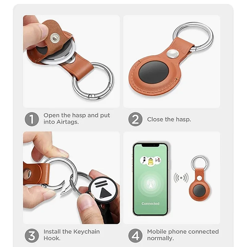 Чехол-накладка для Apple Airtag, кожаный, с брелоком для ключей
