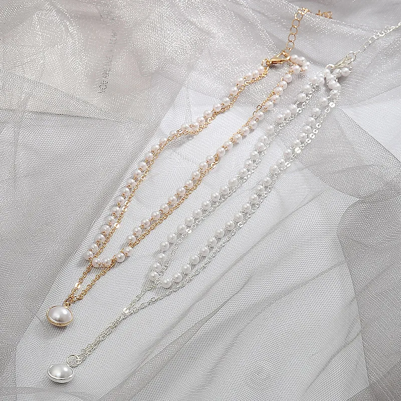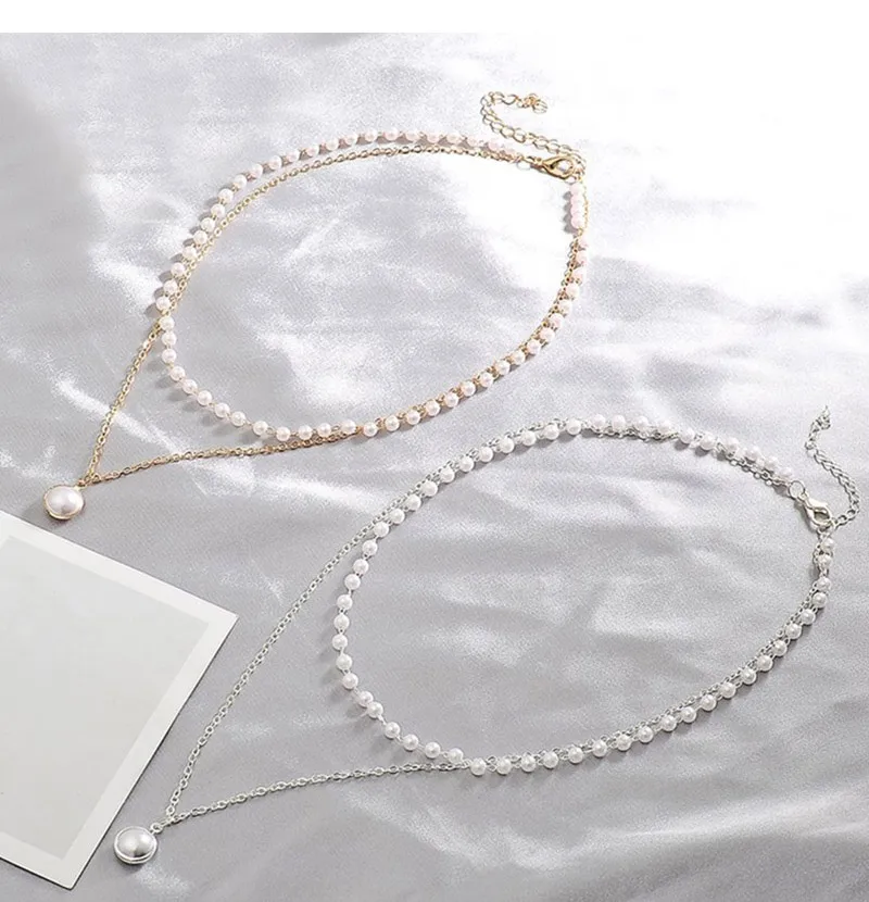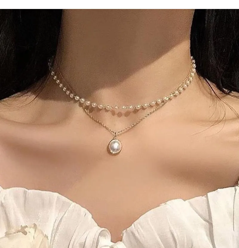 2021 Новое модное ожерелье-чокер с жемчугом Kpop, милая двухслойная...