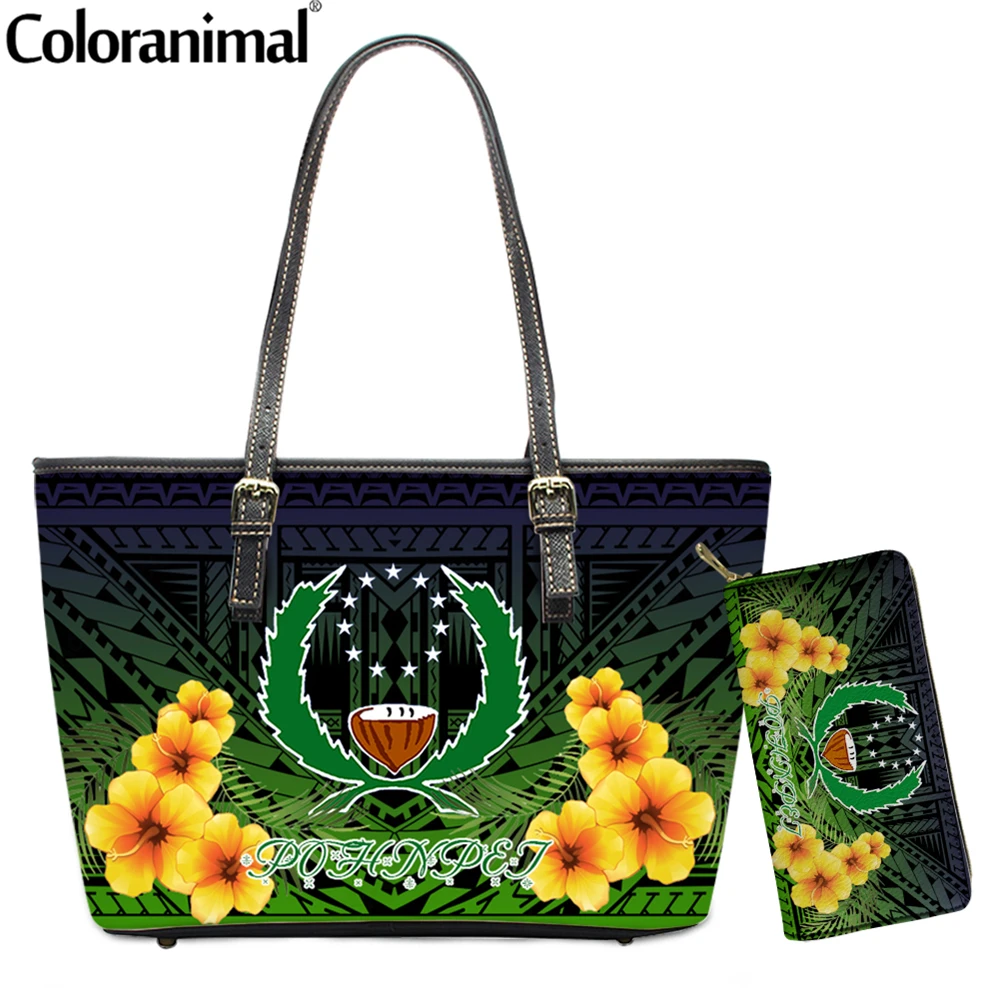 Coloranimal Pohnpe полинезийская Гибискус градиентный принт дамская сумочка из искусственной кожи комплект из 2 шт. сумка через плечо для женщин Повседневная Сумка-тоут
