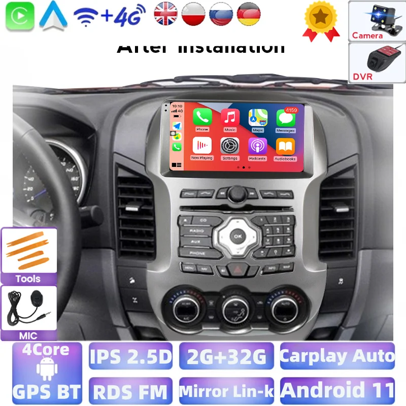Автомобильный радиоприемник RDS 9 ''IPS Android 11 для Ford Ranger F250 2011-15 стерео Мультимедийный видеоплеер GPS навигация 2USB Wifi BT