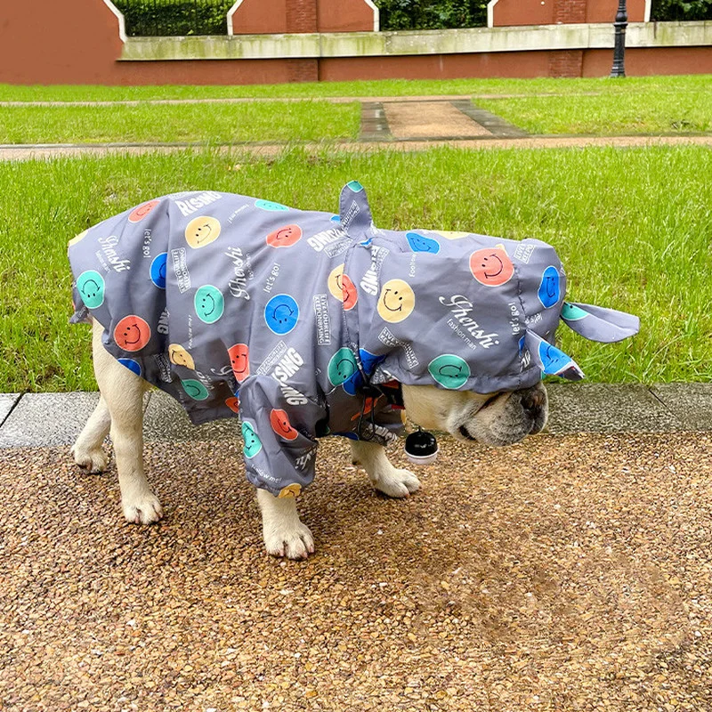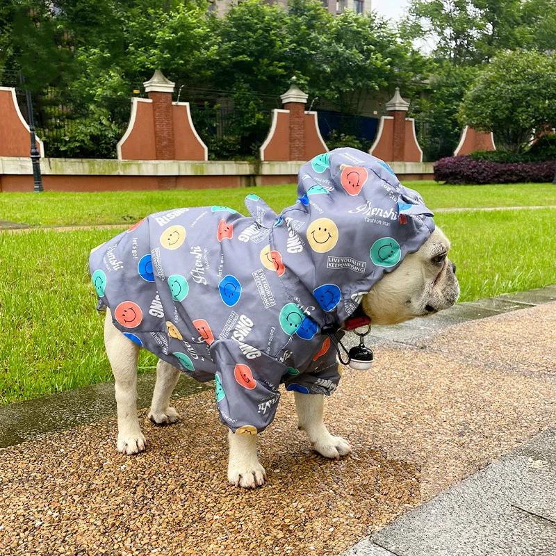 Одежда для собак, дождевик для больших собак, ветровка, толстовка с капюшоном в виде французского бульдога, водонепроницаемая одежда для собак, куртка с изображением смайлика, мопса, Бишон, костюм