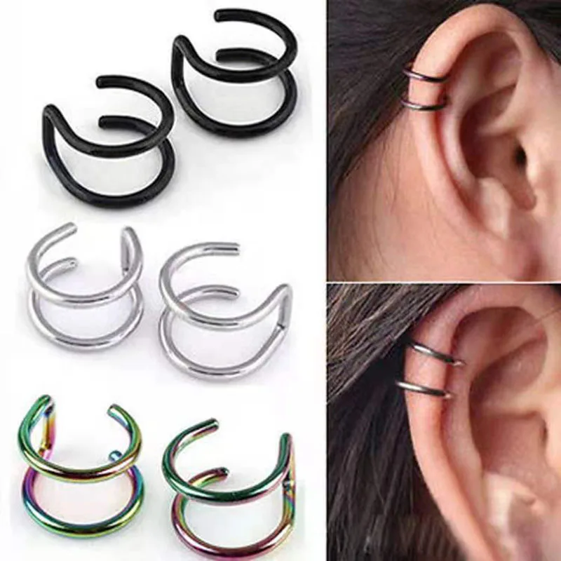Манжета для ушей без прокола МужскаяЖенскаяМужская, клипса C-образной формы из нержавеющей стали в стиле панк-рок, зажим для хрящевой ткани, 2 шт.