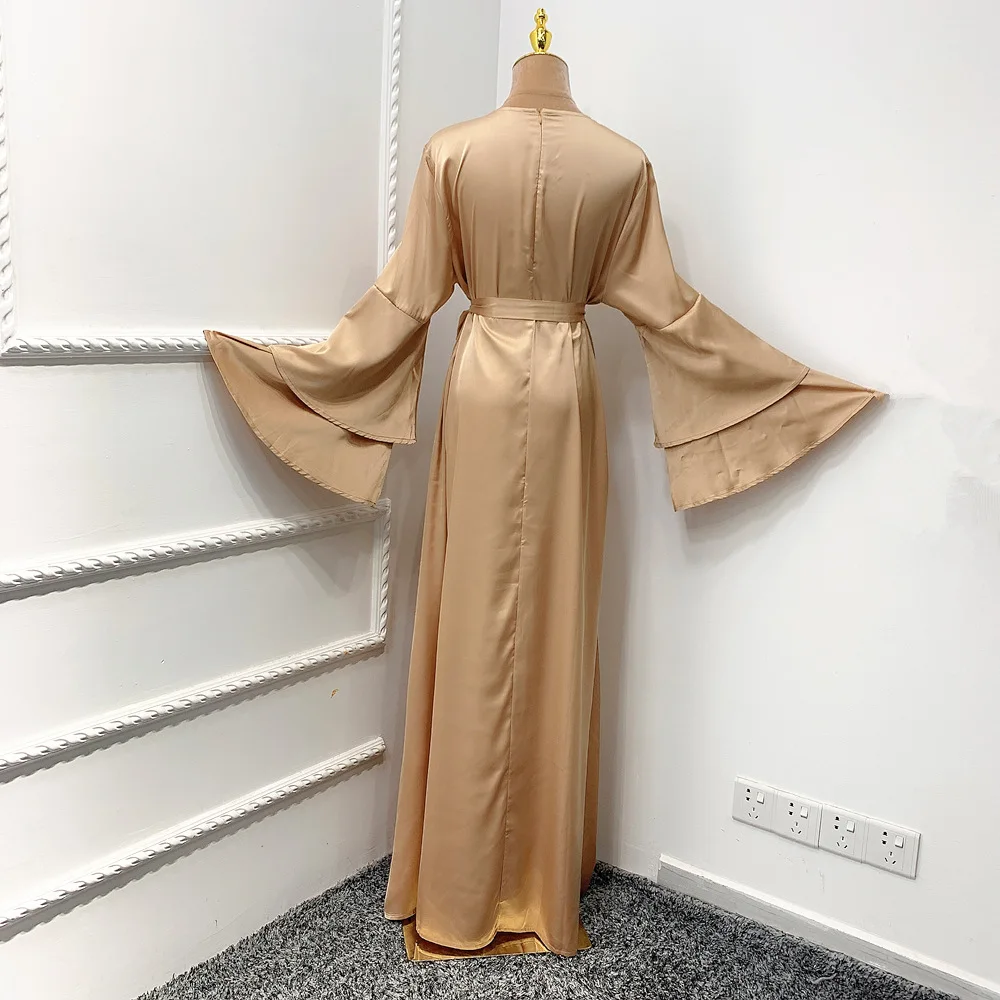 Рамадан ИД атласное хиджаб платье Дубай абайя Турция Лето расклешенный рукав мусульманское мода макси платья для женщин ислам одежда кафтан