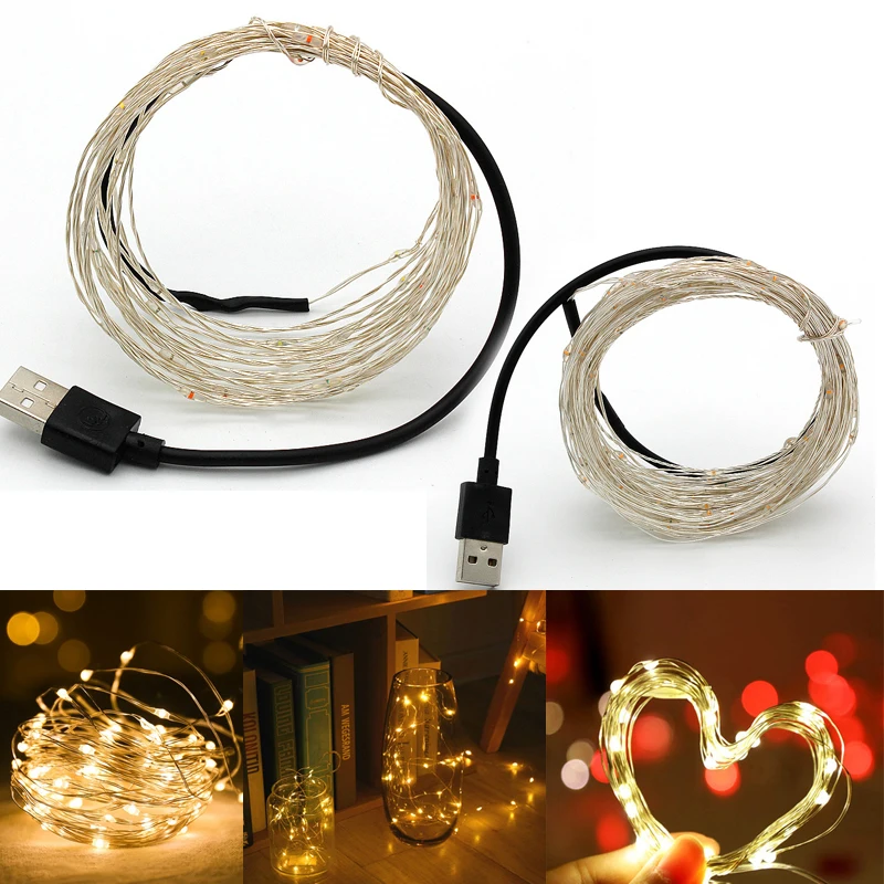 1x 1 м/5 м/10 м медный провод USB гирлянда Рождественские сказочные огни.