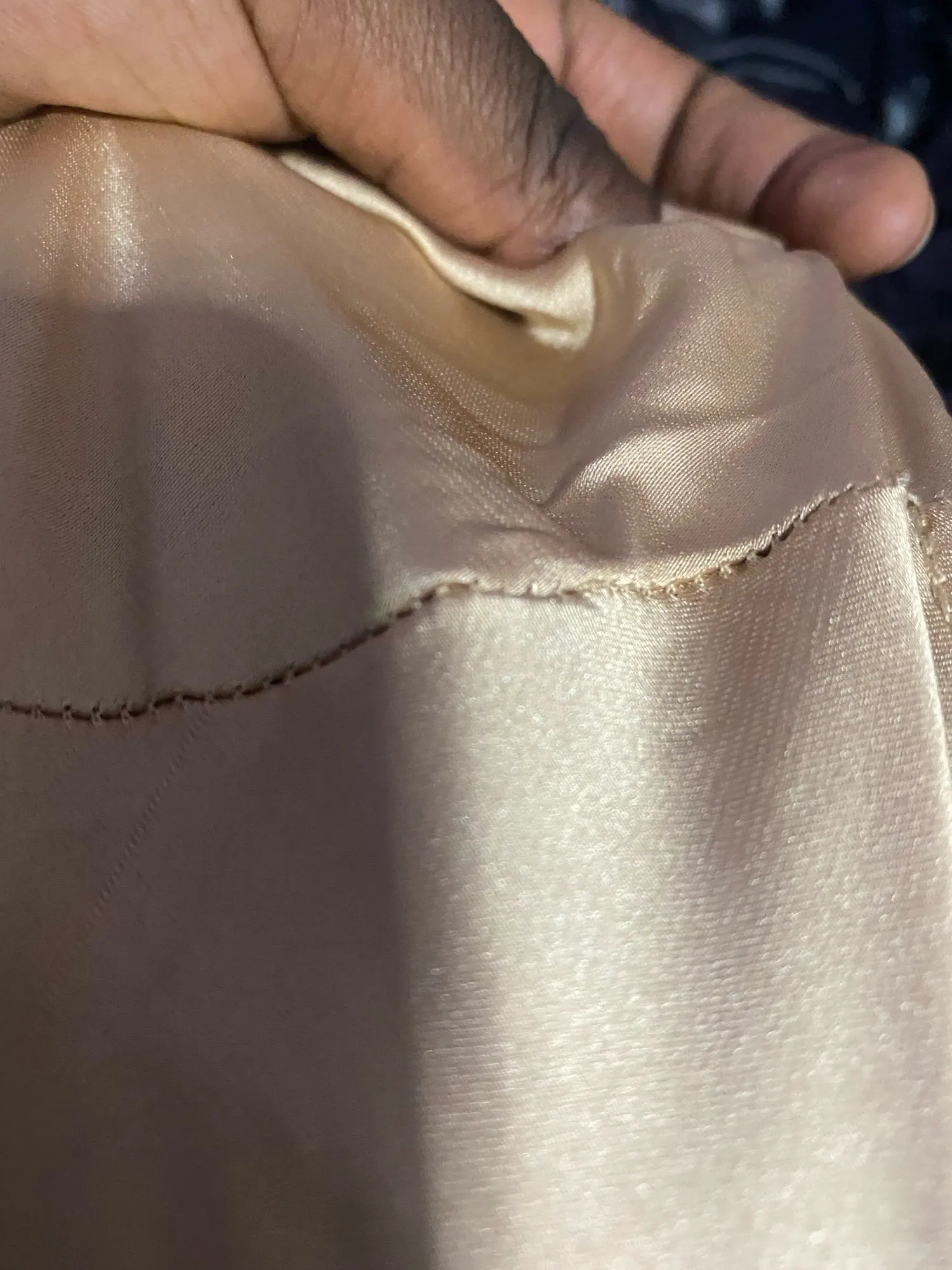 the material was great. but i was so disappointed in the length of this dress!!! i was so upset after trying it on and seeing how short it was!! it didn’t even reach my ankles