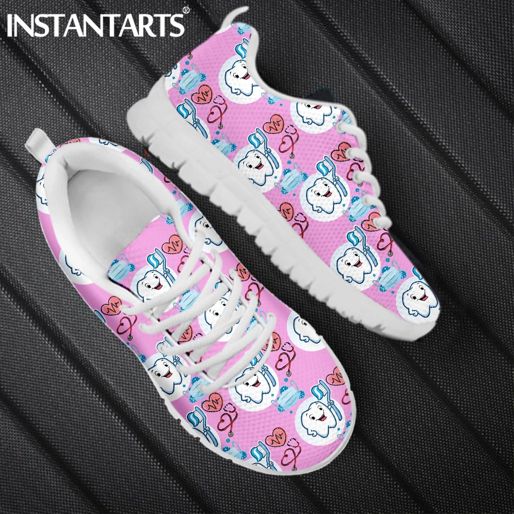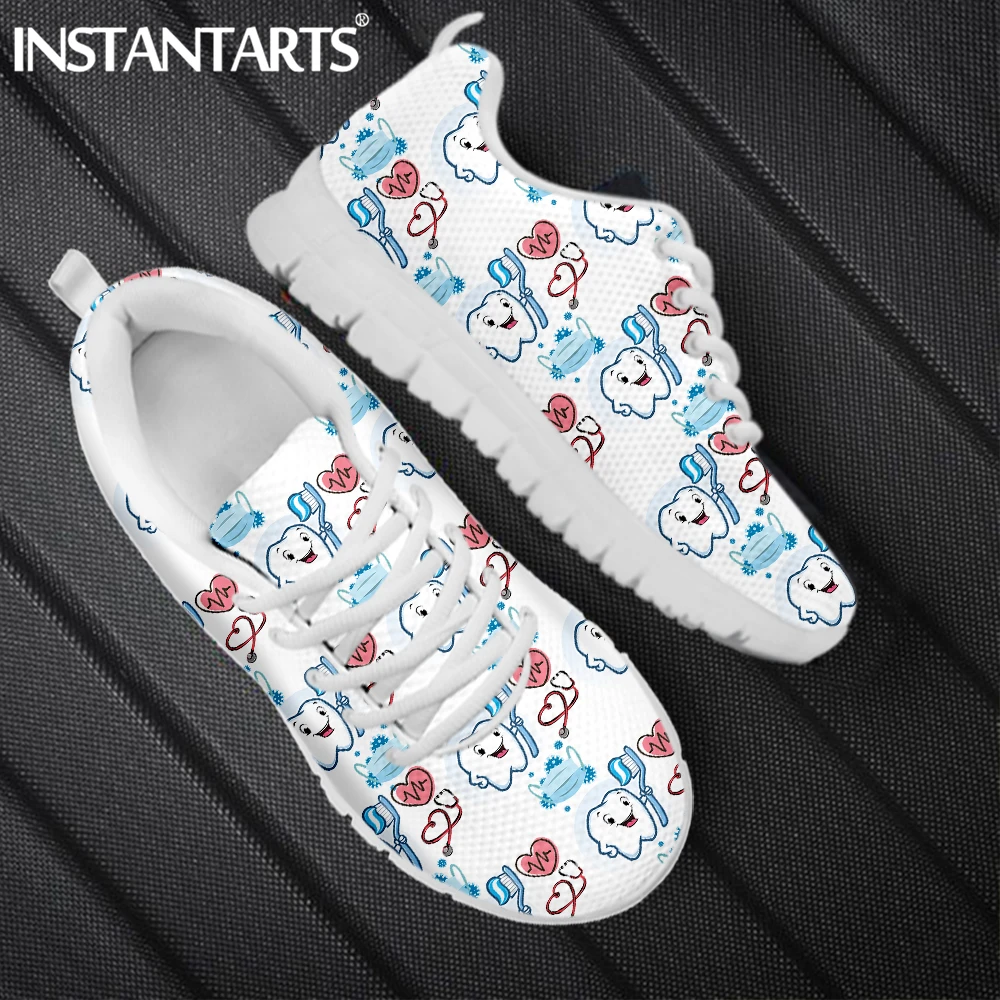 Женские повседневные кроссовки INSTANTARTS, Осенние удобные теплые кроссовки с мультяшным рисунком зубов, на шнуровке