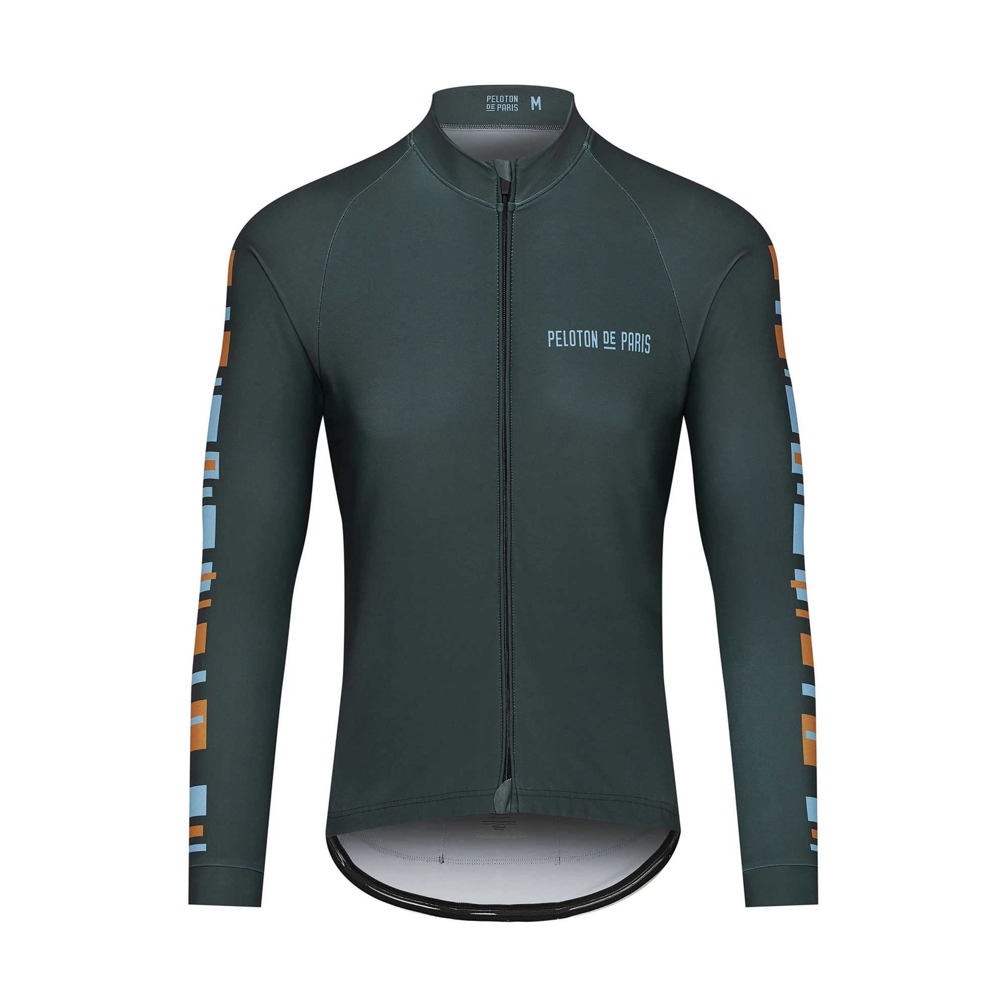Мужская весенне-осенняя тонкая куртка PELOTON DE PARIS с длинным рукавом, фирменная велосипедная Джерси, черные нагрудники, одежда для велоспорта