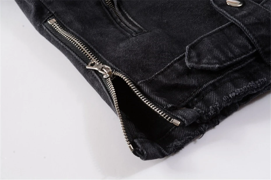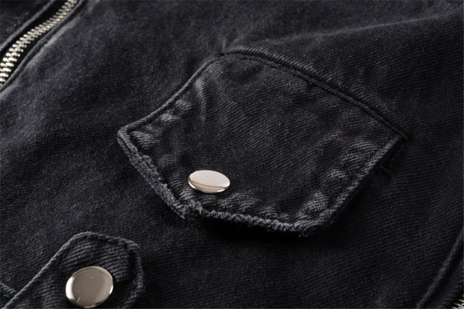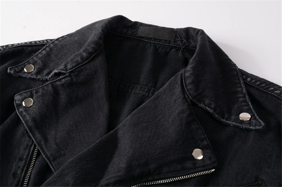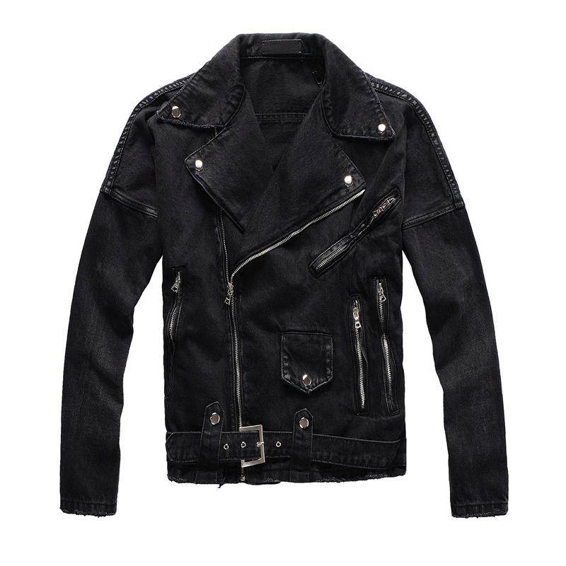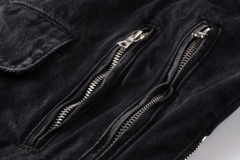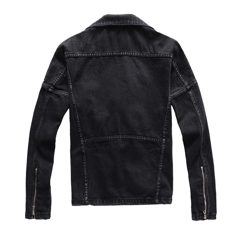 Мужская Байкерская джинсовая куртка, черная джинсовая куртка в стиле панк, с несколькими молниями, Байкерская джинсовая куртка, приталенная джинсовая куртка на молнии для мужчин