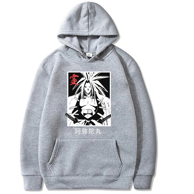 Модные Аниме толстовки с капюшоном Amidamaru Shaman King, Модный черный и белый пуловер с мультяшным принтом, Женская Повседневная Толстовка в стиле Харадзюку
