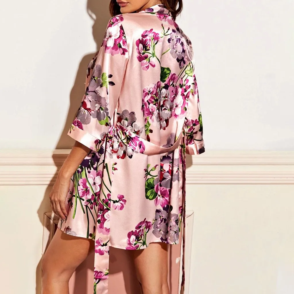 Халаты женские модные с цветочным принтом летние шелковые атласные Короткие ночные халаты сексуальный халат для женщин Свадебные халаты для невесты и подружки невесты 3 шт.