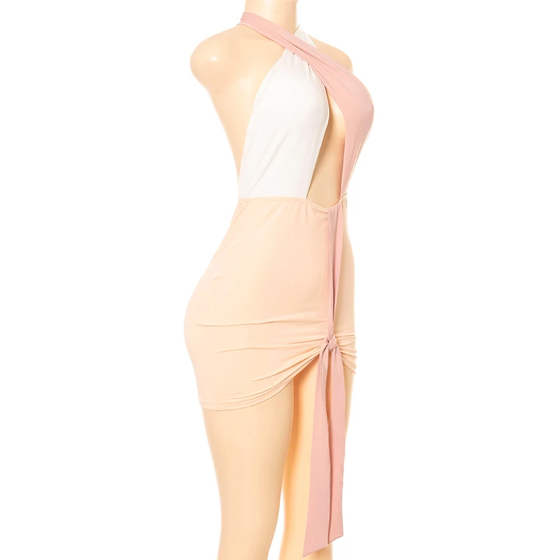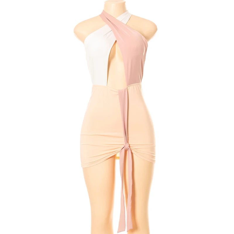 Сексуальные облегающие платья для вечерние и клубов bomlook для женщин, летняя одежда 2021, комбинированное платье с лямкой на шее и открытой спиной, женская уличная одежда