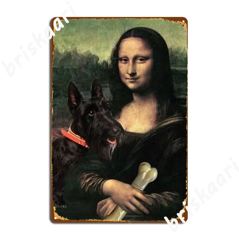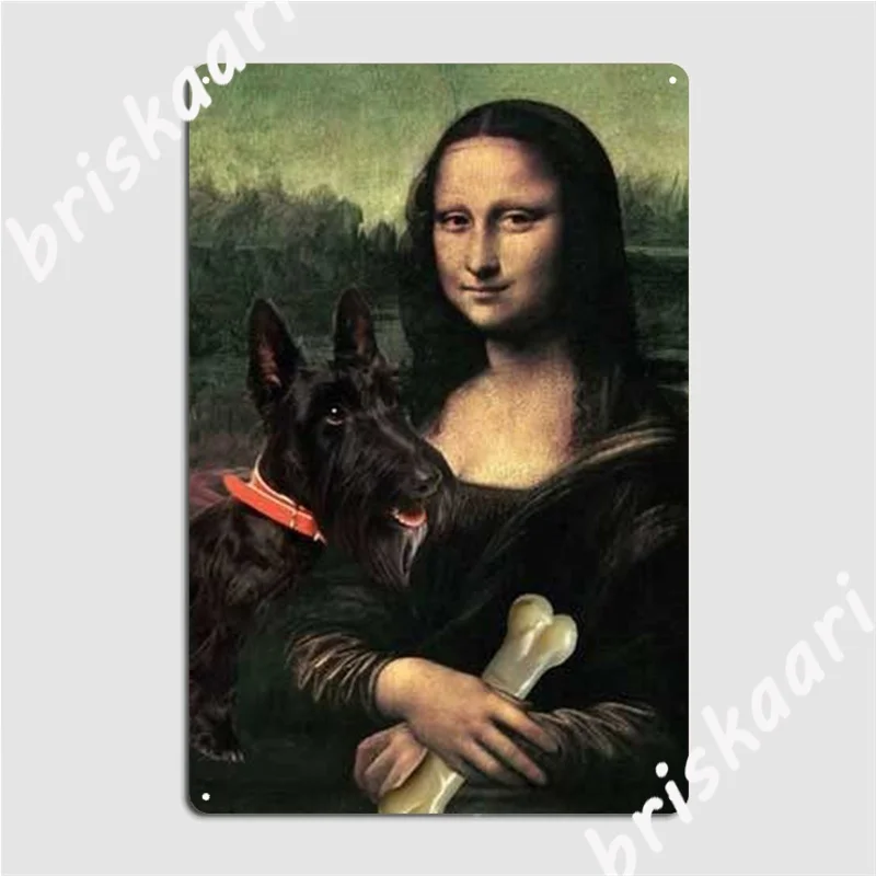 Забавный Скотти собака шотландский терьер Мона Лиза металлический знак дизайн паба гаража Настенная роспись оловянный знак плакаты
