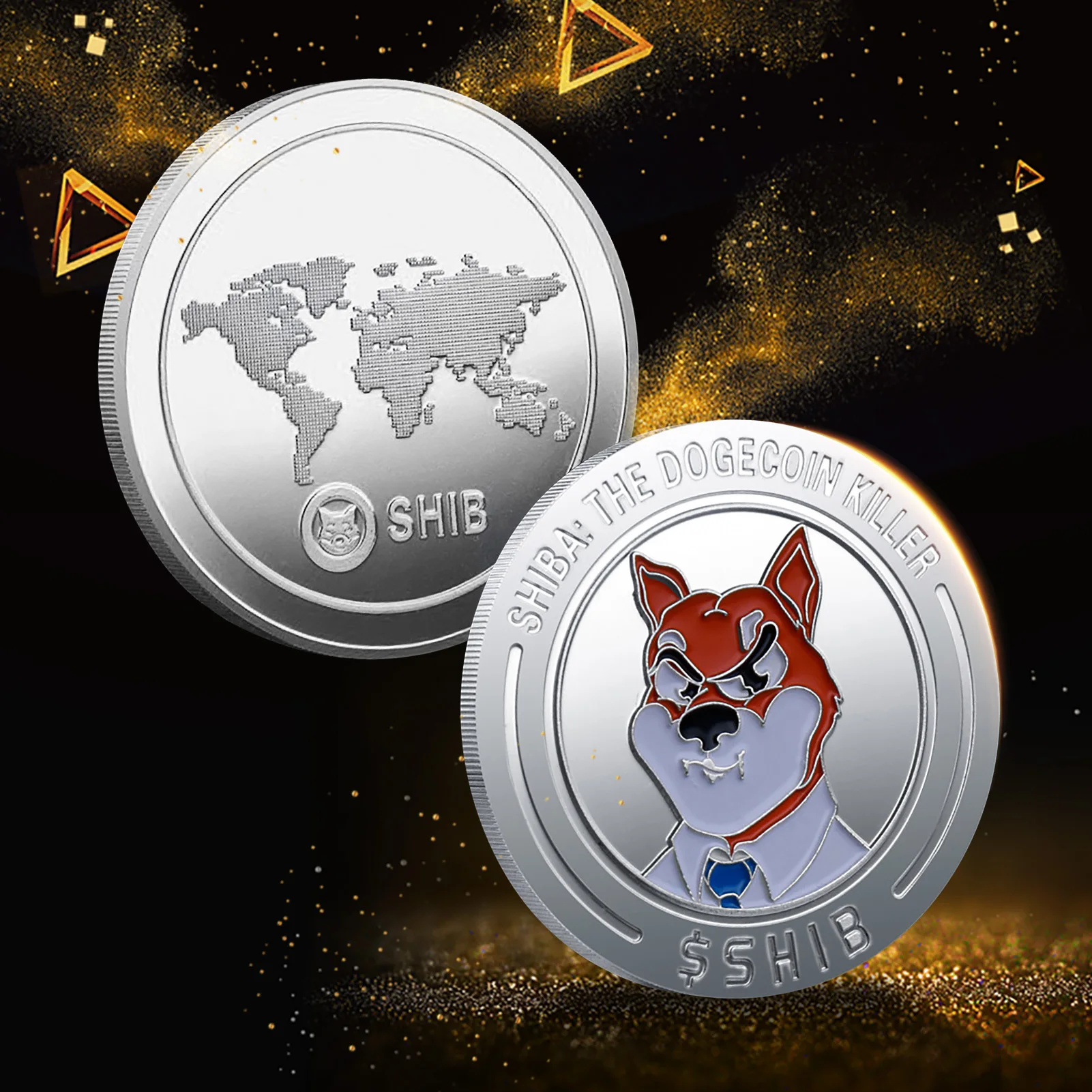 SHIB сувенир Dogecoin 3D рельефная памятная монета Позолоченная серебряная декоративная краска счастливая монета современные металлические изделия Сиба-ину