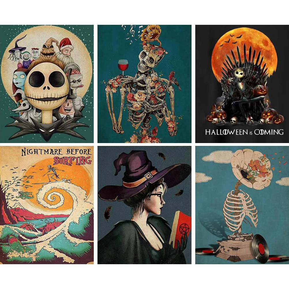Алмазная 5D картина сделай сам на Хэллоуин, тыква, призрак, скелет, ведьма, вышивка крестиком, мозаика, рукоделие, домашний декор, подарок