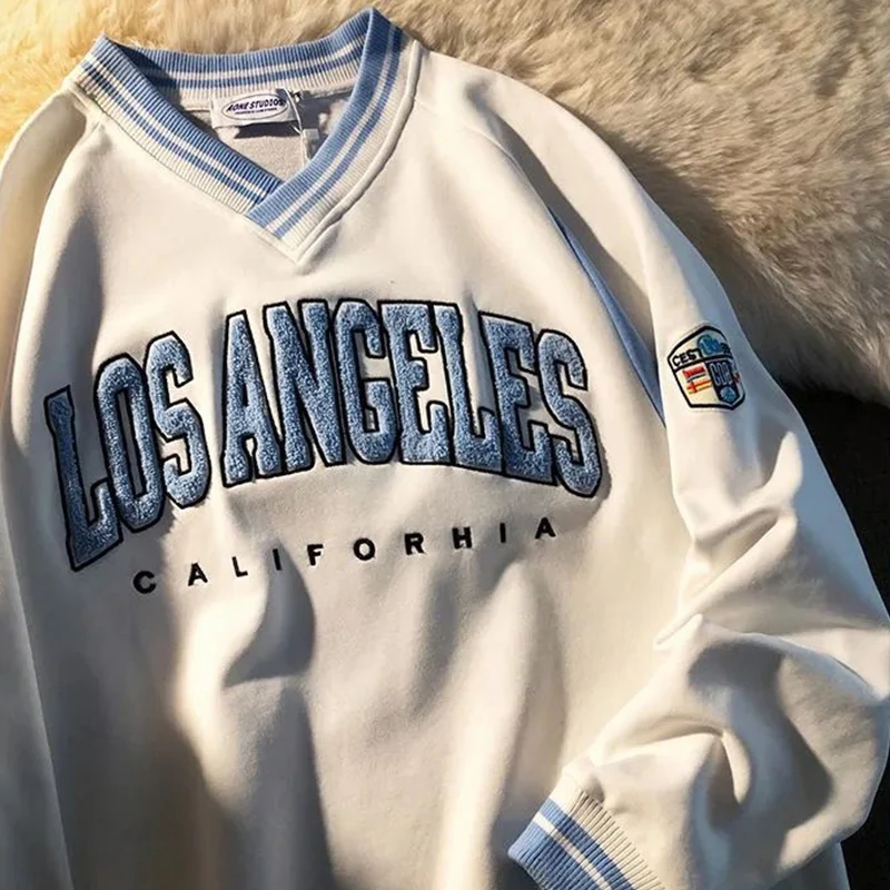 Толстовка с вышивкой в стиле ретро, Harajuku, с V-образным вырезом,...